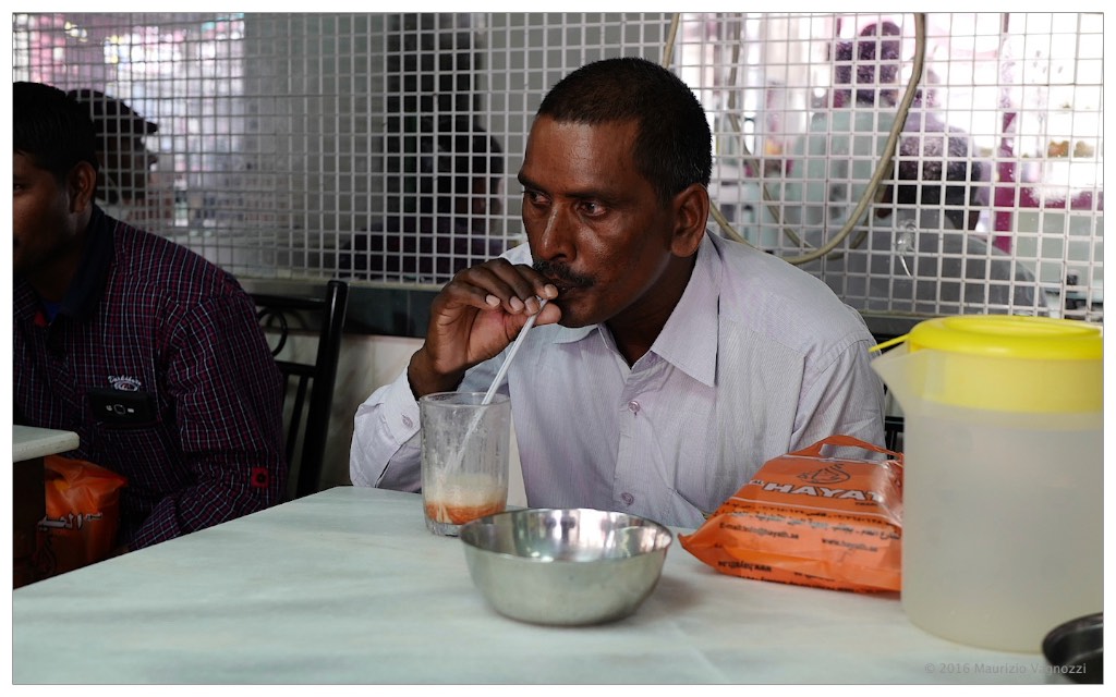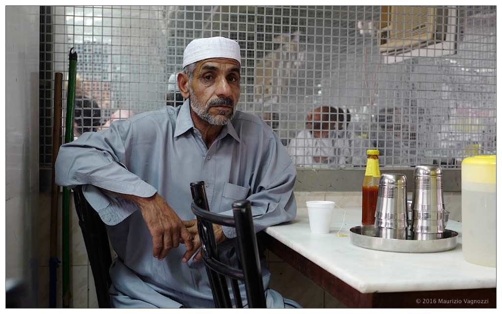 Arrivati ad Al Ain, parcheggiato, attraversato l’oasi, visitato il Palazzo, riattraversato l’oasi, entrati nel vecchio Souk ho visto come un miraggio l’insegna Syria Cafeteria: ho comunicato in un misto di inglese, hurdu e arabo ho ordinato 5 centrifugati di carota.