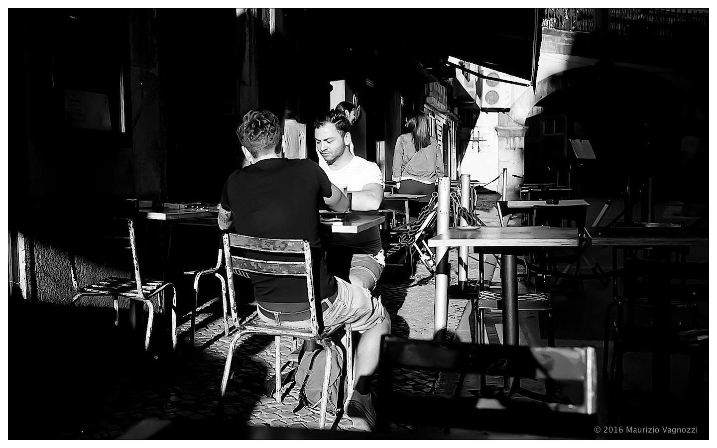“Ma sai che non ti avevo riconosciuto al telefono? Avevi una voce così seria e compita che ho continuato a pensare chi avrei potuto conoscere, e invece vada-via-i-ciap sei tu!“, mi dice Rudi mentre allunga un bicchiere a toccare il mio, “Ma la prossima volta dimmi che sei tu!” aggiunge non rendendosi conto di sconfinare nell’ontologia auto-referenziante e forse anche un filo egocentrico-teologica a guardare il colore dello Spritz che sto bevendo.
