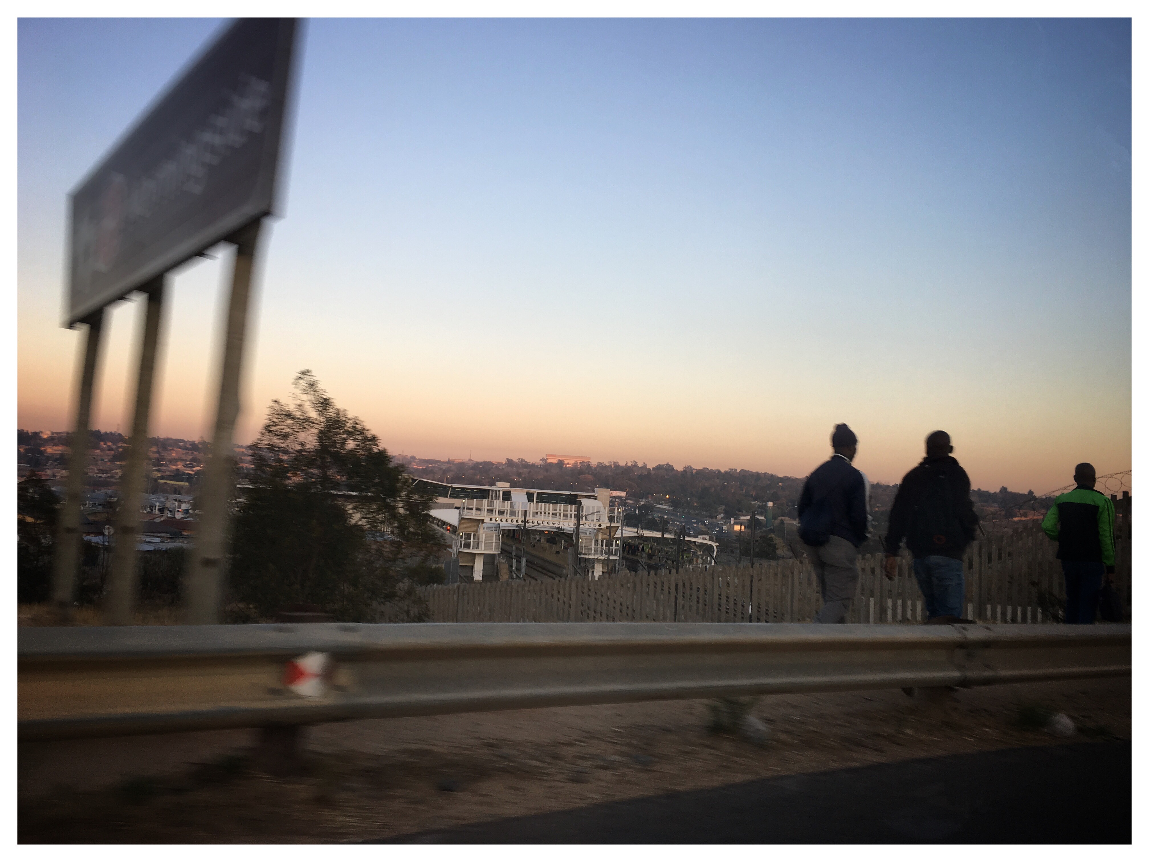 Foto? Qualcosa con l’iPhone, che un telemetro è in borsa ma dubito avrò il tempo di usarla: gente che cammina a bordo strada verso la stazione di Sandton, Caronte, e infine un moderato e dietetico breakfast che mi son concesso …