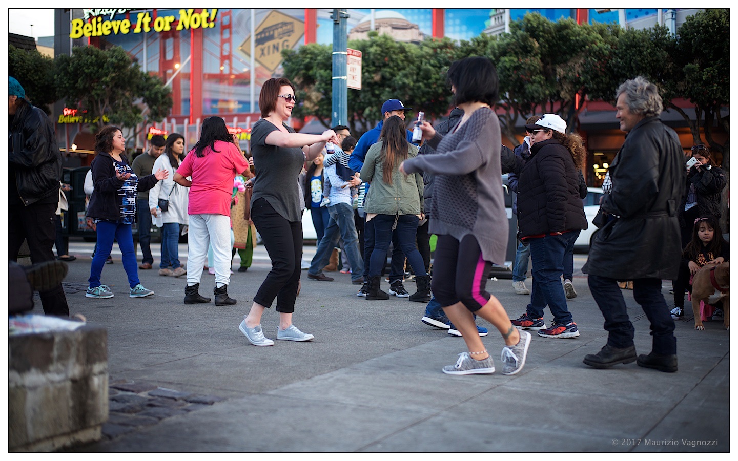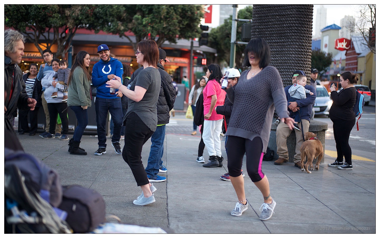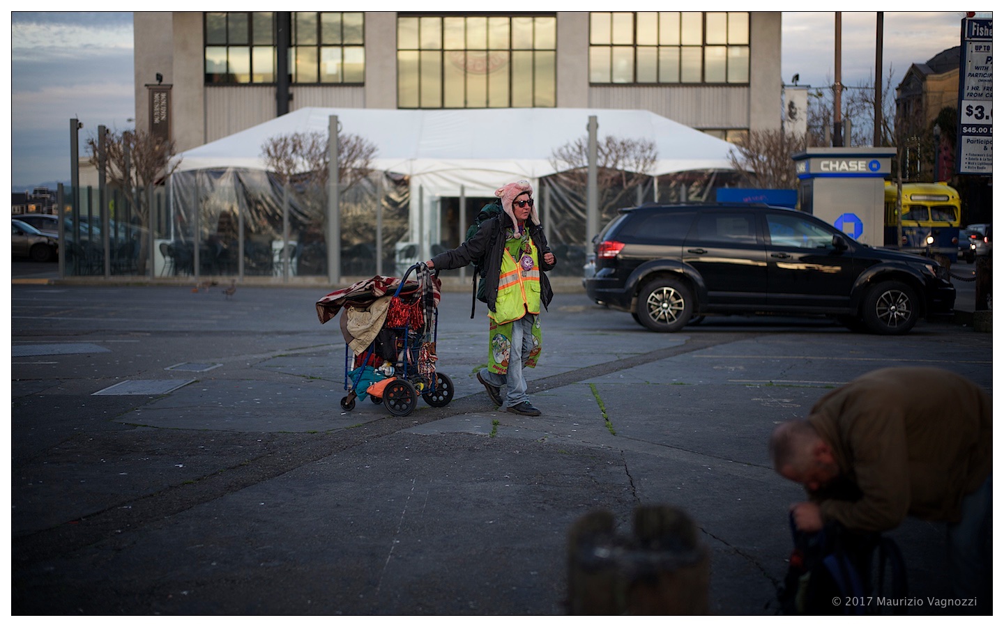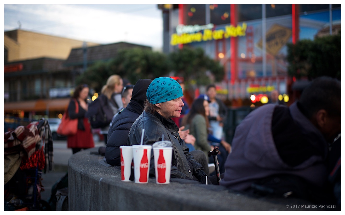 Il tramonto sulla Baia di San Francisco. Le luci delle insegne aumentano il loro contrasto. Un melting pot di latinos, homeless, turisteย brille, ed ex-bikers che si son bevuti o fumati le loro due ruote.