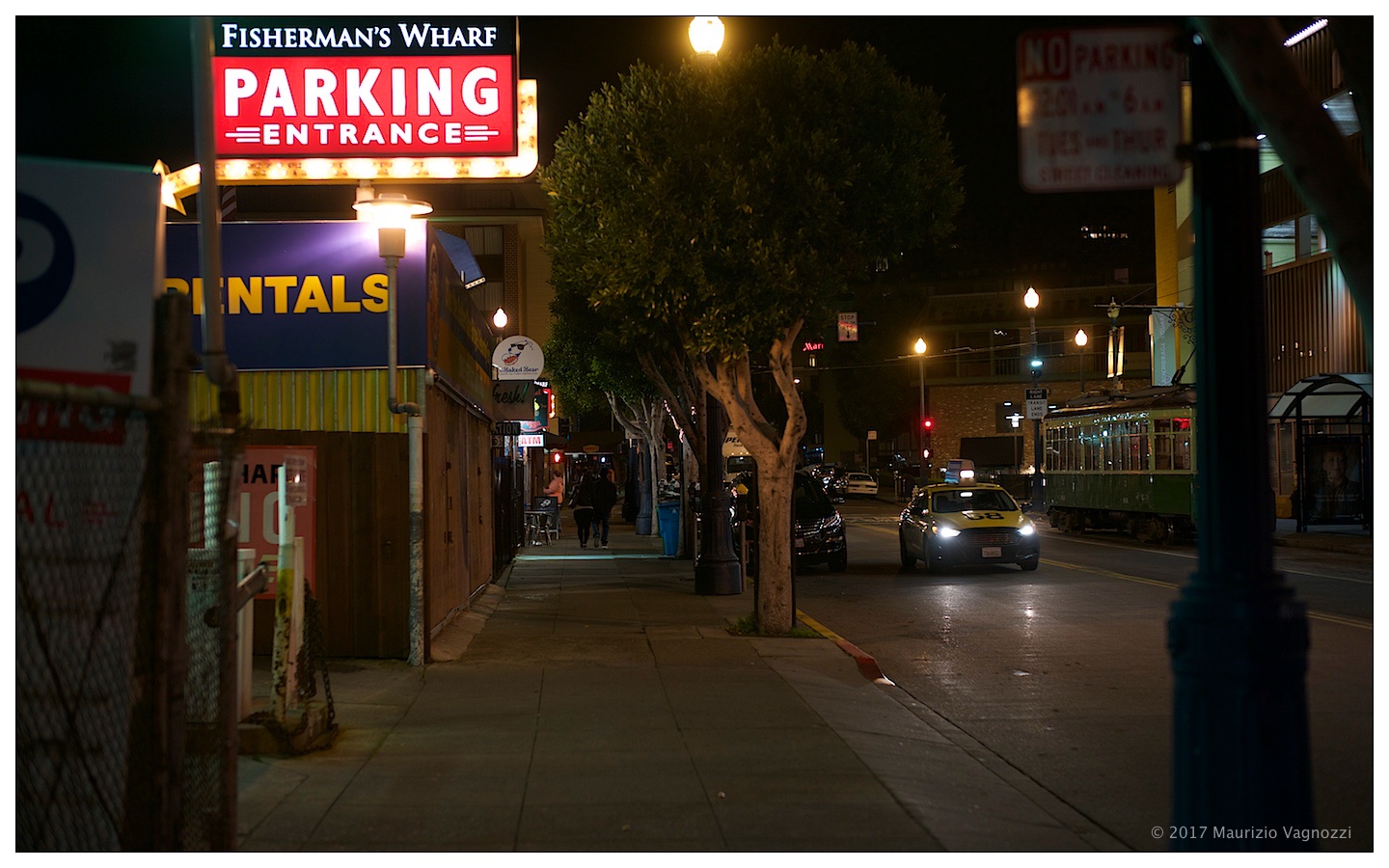Foto? Ieri sera ho finito che ormai era notte: però mi sono imbattuto in un pezzo di Italia sui binari, un tram milanese trasferito e adattato che fa servizio regolare tra la zona del Wharf e Union Square …