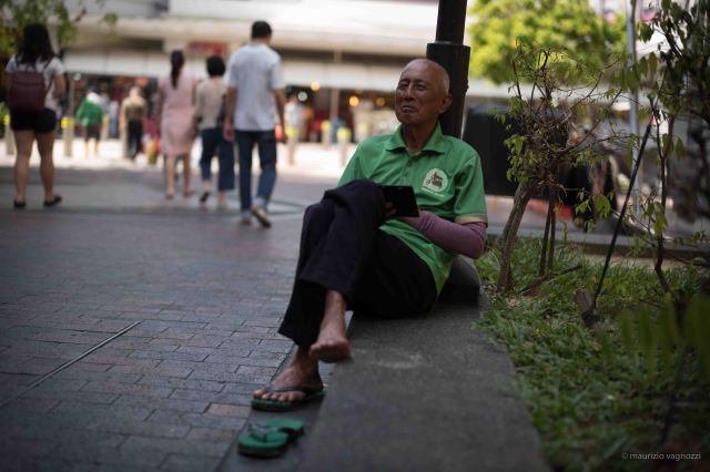 Sono venuto ritualmente a comprare una delle sue pashmina, dietro il Tekka Market a Little India, nella Singapore più povera e malsana: non ne ho bisogno (normalmente le regalo), ma la considero una sorta di tradizione, di “tassa di vita” che mi sembra giusto pagare, per la conoscenza che mi lega a questo individuo da svariati decenni.