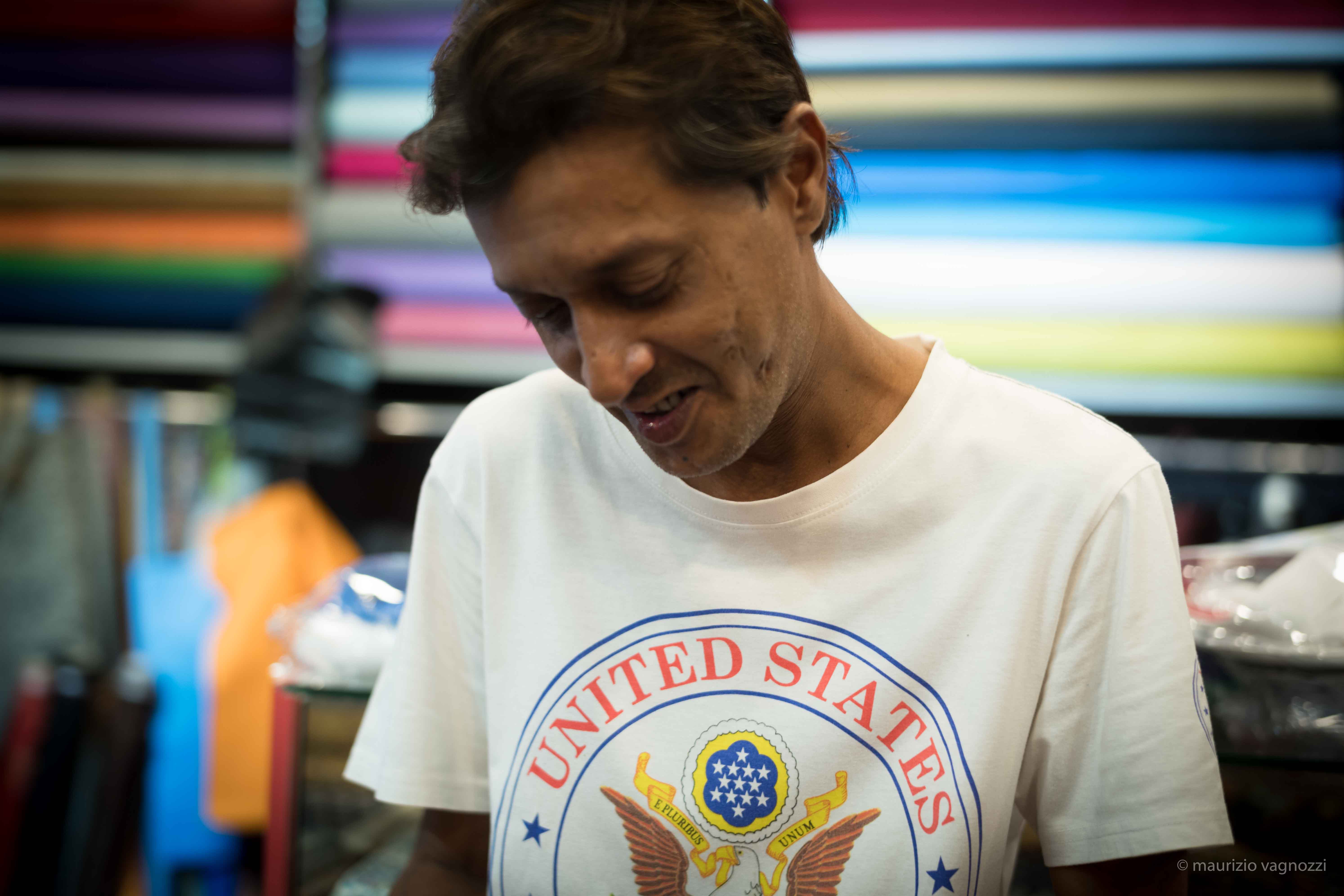 Sono venuto ritualmente a comprare una delle sue pashmina, dietro il Tekka Market a Little India, nella Singapore più povera e malsana: non ne ho bisogno (normalmente le regalo), ma la considero una sorta di tradizione, di “tassa di vita” che mi sembra giusto pagare, per la conoscenza che mi lega a questo individuo da svariati decenni.