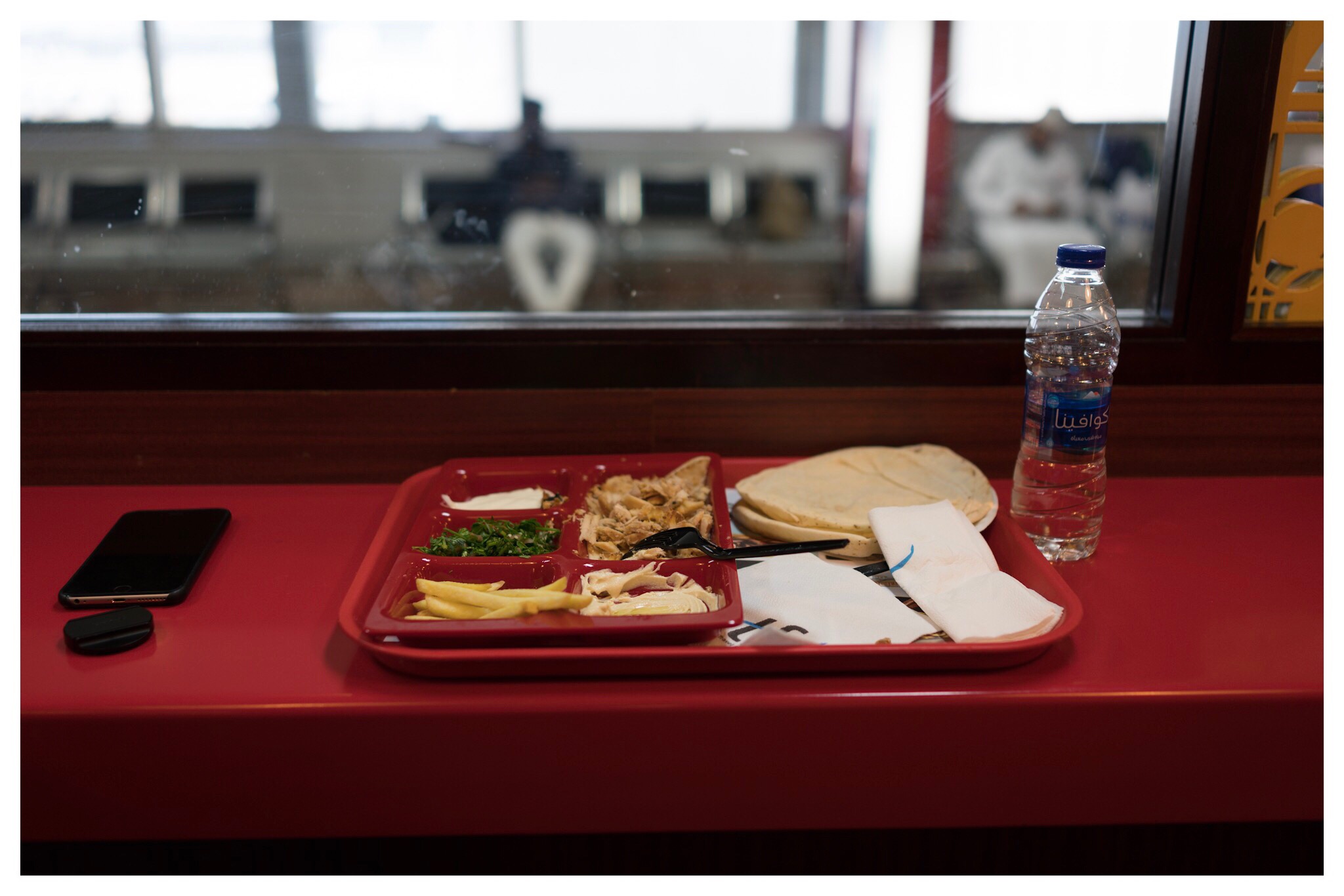 “HamburgerHamburgerFries?”, mi chiede, facendomi chiaramente capire che sta facendo da troppo questo lavoro. “Nah, non c’e’ qualcosa di un filo più sano?”, gli rispondo. “SandwichSubPaniniSubPanini” mi spara a raffica, poi si interrompe un secondo e urla “DammanDohaJordanBoardingDammanDamman”.