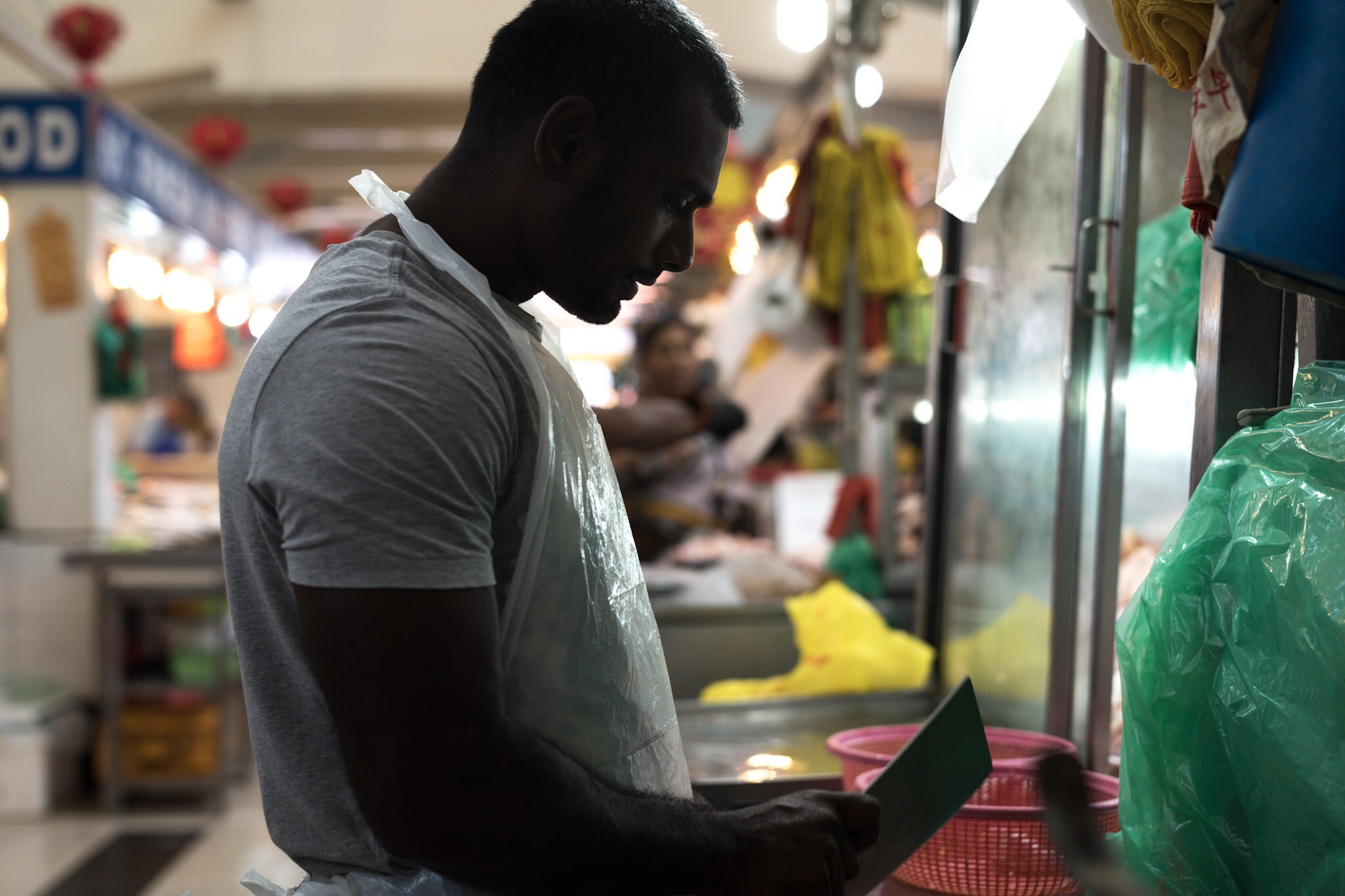 Immagine? Ovvio un coltello, anche se con una sola lama, un coltello chinese, e ne ho scritto qualcosa in questo post. I “controluce” mi piacciono, poi quando sono uniti ad un’apertura impossibile, in un contesto particolare come quello del Tikka Market, e’ impossibile non scattare un’immagine …