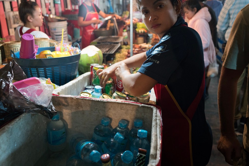 Viene chiamato sulla Lonely, il “Night Food Market”: e’ un carruggio riempito di street-food da entrambi i lati, tanto che ci si passa a fatica, e i posti per sedersi sono consoni a una condivisione forzata dei gomiti in una masticazione alternata.