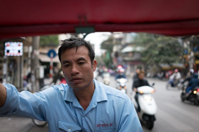 Ad Hanoi ho deciso di visitare la Città vecchia su un rickshaw, mentre un tipo prezzolato mi spingeva seduto sulla bicicletta-locomotrice posteriore: e’ stata – aspetto protocoloniale a parte – un’esperienza per poter osservare un mondo incredibile, comodamente seduto su un sofa’ che si sposta nel continuum di un troiaio incredibile.