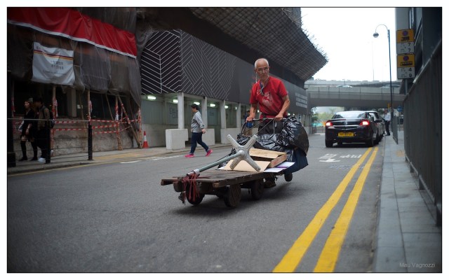 L’ultimo segmento della distribuzione logistica di qualsiasi tipo di prodotto, dal cavolo chinese alla borsa di Gucci, e’ su carrello a quattro ruote qui ad Hong Kong.