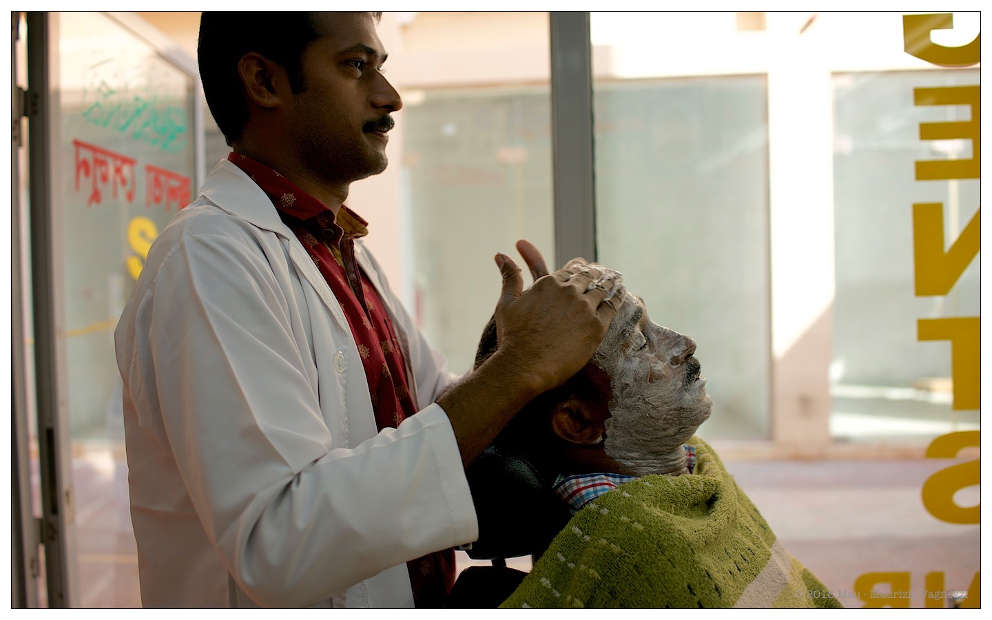 È un universo quasi esclusivamente maschile. Uomini seduti a bere il tea, uomini che aprono le botteghe, uomini al telefono, in una lingua che sa di montone arrosto e delle montagne brulle nelle valli del Pakistan. Uomini nelle panetterie, nelle caffetterie, nelle macellerie, nelle saracinesche che lentamente si aprono, in un brulicare di commercio al minuto che sfida le leggi dell’economia.