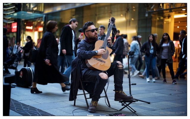 Scartata l’idea di scattare qualche immagine nel Luna Park, sono tornato a Circular Quay, risalendo fino a Pitt Street, in cerca di qualche Street Performance: ho trovato un chitarrista dotato che arpeggiava Hotel California come se avesse avuto 15 dita, e non solo 10.