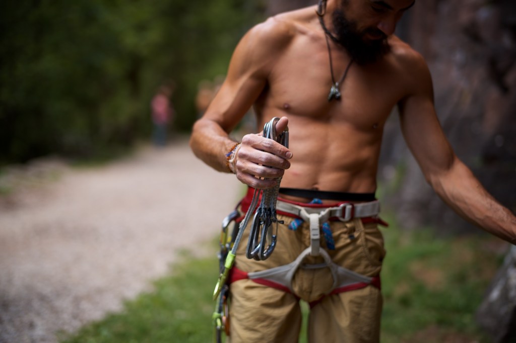 Poi c’e’ il tuo compagno giù. Tiene in mano il tuo cordone ombelicale con la vita, la corda che passa nel gri-gri (il dispositivo di frenata assistita), e ti protegge dagli errori che in questo sport si possono pagare con la vita.