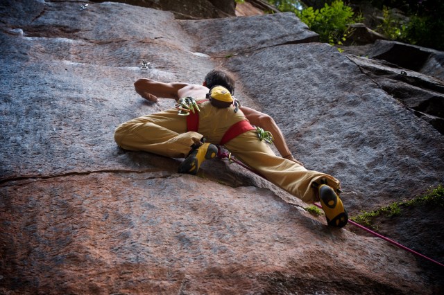 Le tue mani, i tuoi piedi, il tuo sudore. E la tua testa, che comanda i muscoli e controlla la via, cercando nel liscio della parete i punti dove il complesso di leve possono portare il tuo peso verso l’alto.