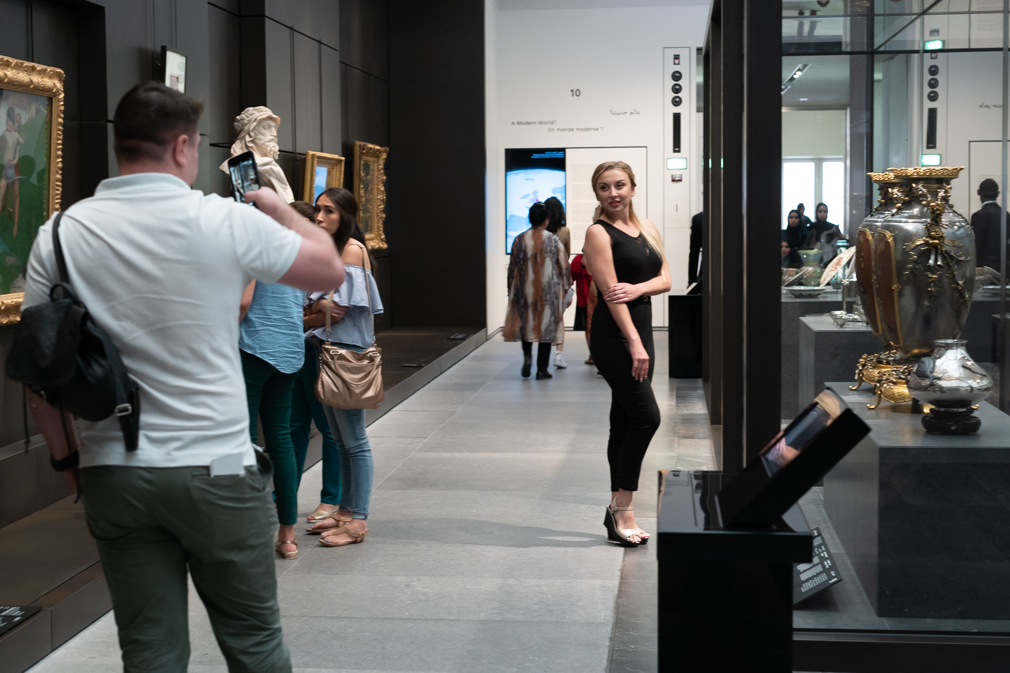 Una delle parti più’ interessanti della visita sono i visitatori stessi, che nella quasi totalità’ dei casi interagiscono con se stessi, molto più’ che con le opere esposte: il telefonino onnipresente, il selfie in costante agguato per confermare sul social “io ci sono, e sono figo” usando il contesto di sfondo come affermazione simil-Hegeliana.