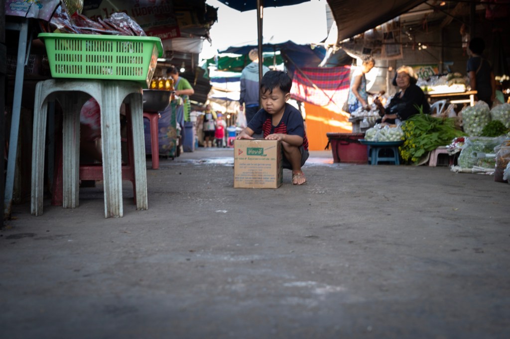 Compro delle bucce di banana fritte, a listelli, e del croccante. Evito l’anatra laccata con lo zucchero di canna di Chiang May, che mi farebbe cadere in una cariogenesi da mutuo col mio dentista. Sorrido all’ordine e alla pulizia, che pare così lontano dai mercati delle zone rurali Chinesi, solo una migliaia di chilometri più a nord, nella culla dello Siam.