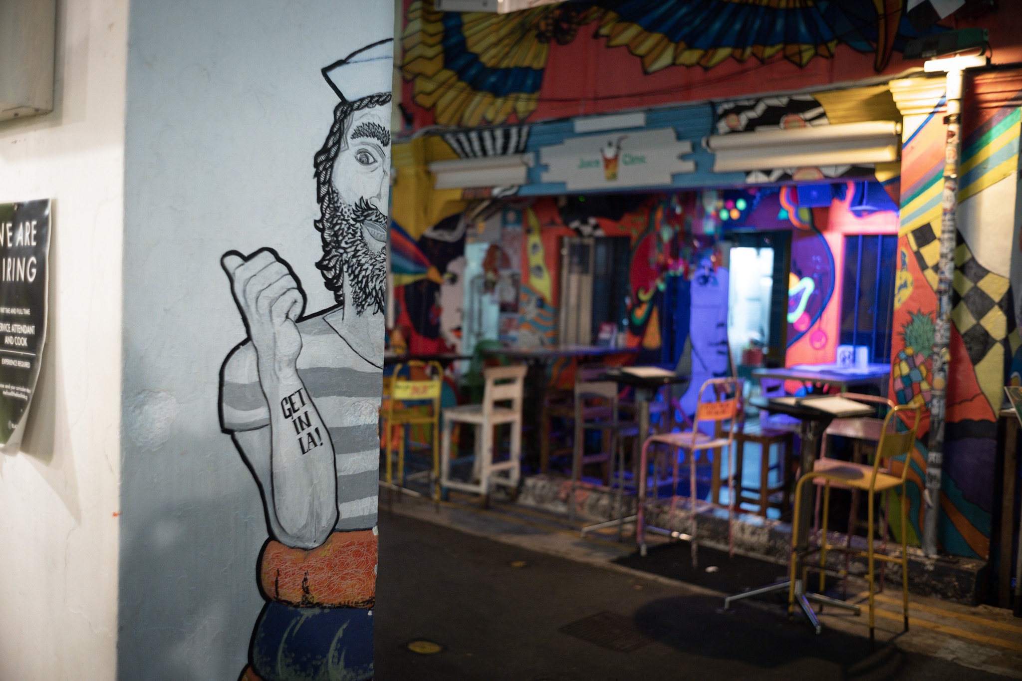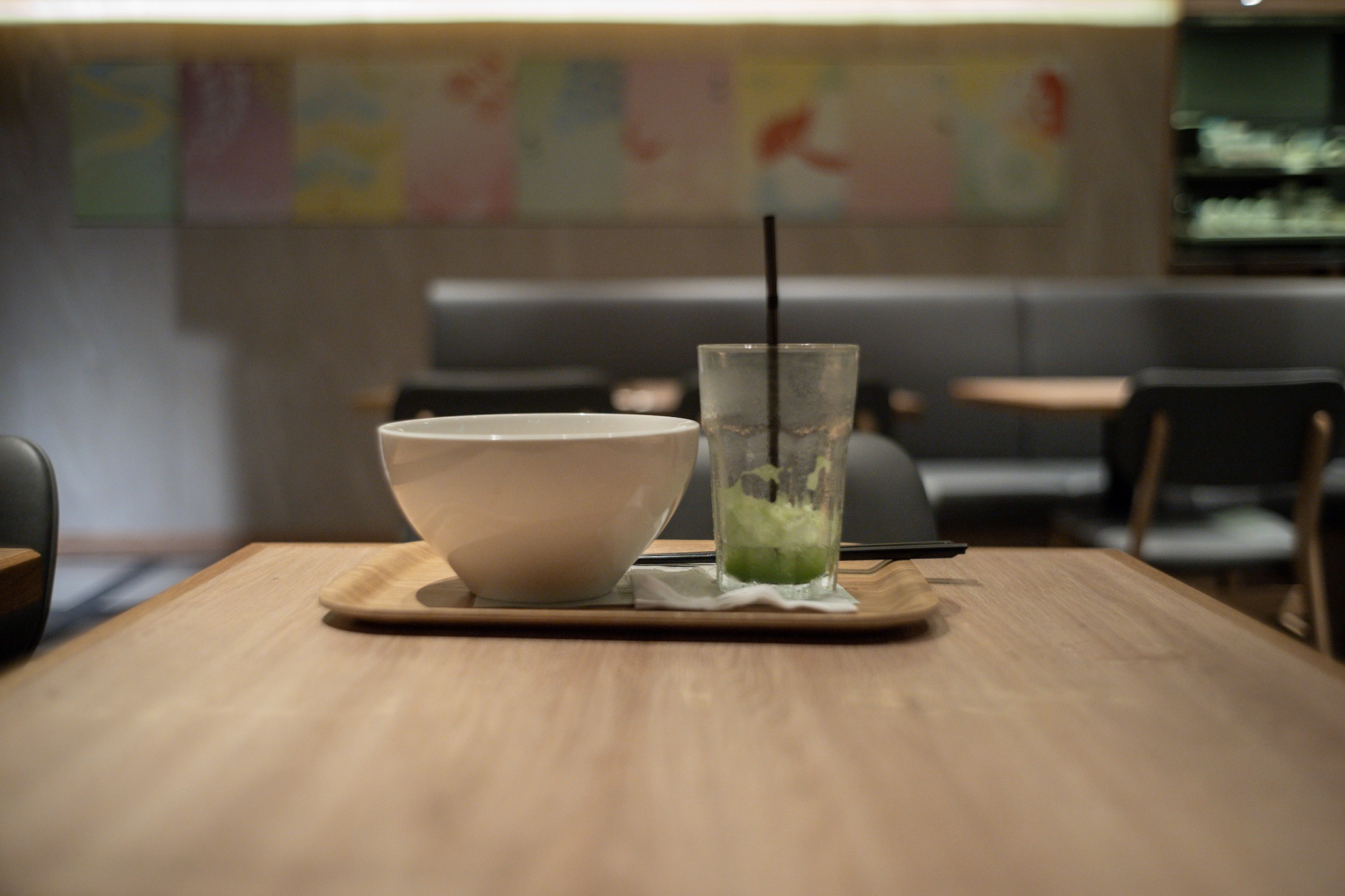 Il posto è piccolo, tranquillo: sembra una trasposizione orientale, aggiornata, del quadro Night Hawks di Hopper.