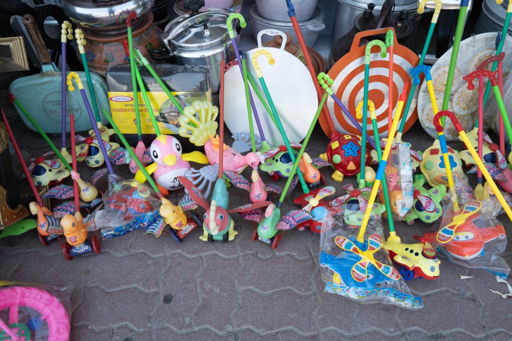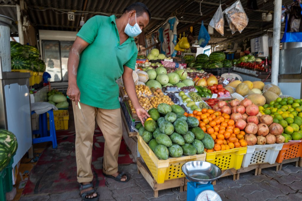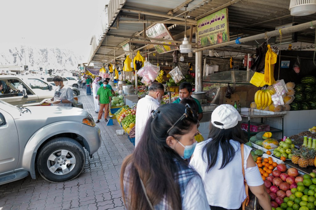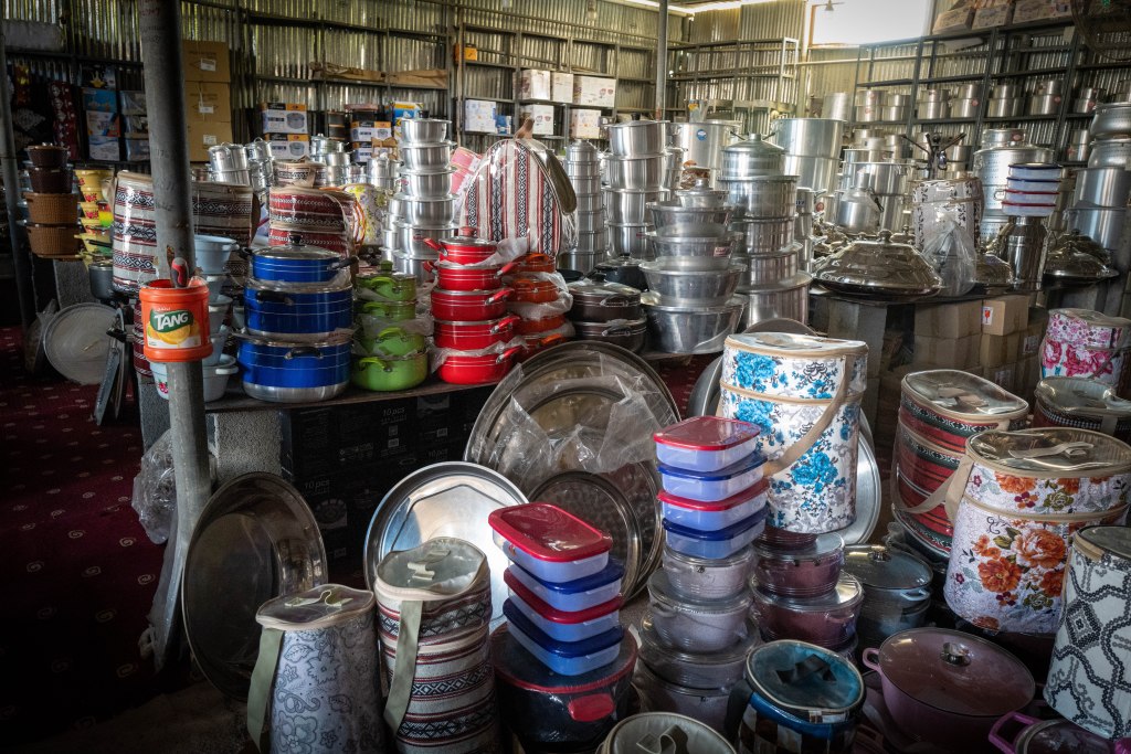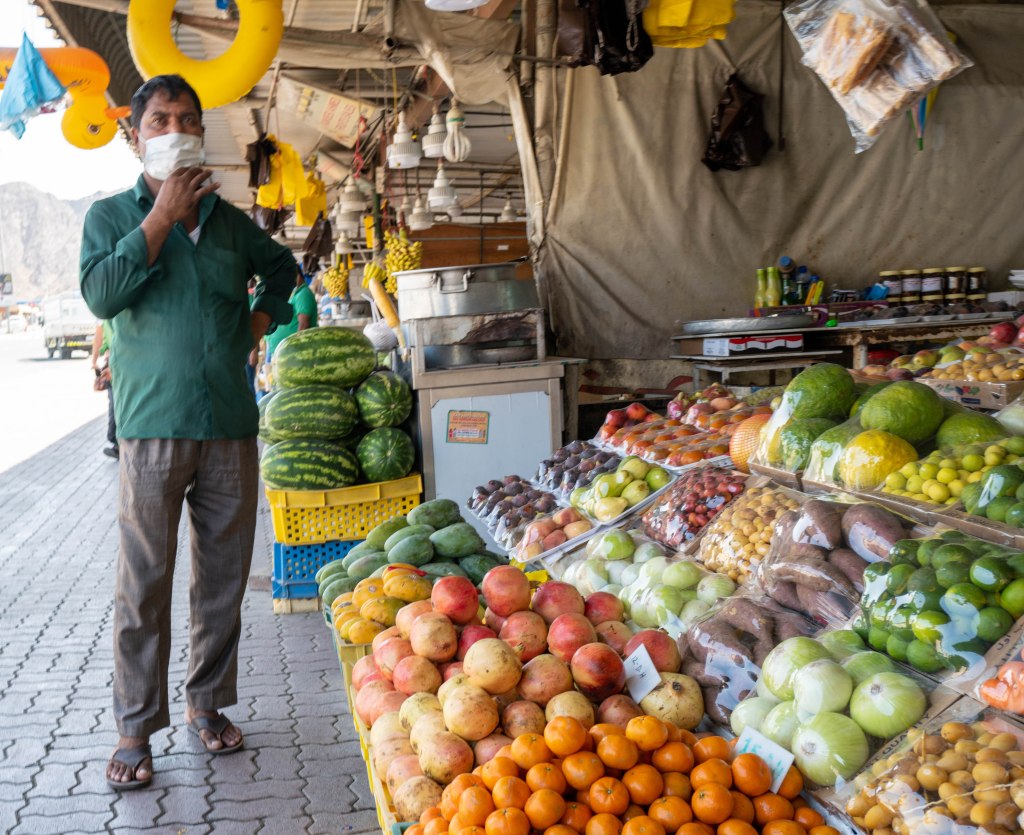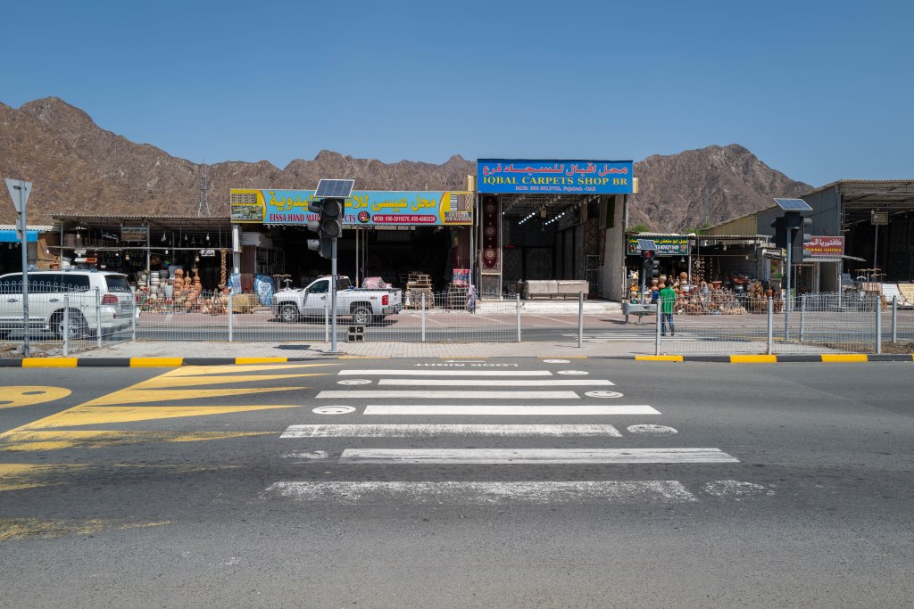 Tappa al Friday Market, prima di entrare a Masafi: ossimoro commerciale, dove sotto le lamiere ondulate si perpetua il modello di Suq, concentrando la vendita di prodotti in aggregazioni che difficilmente avrebbero senso da noi, e rimangono per me un mistero di business-model. Tra una bancherella di verdura e un’altra ce n’è una terza, e questo si ripete, creando una fila di 35-40 negozi diversi che vendono esattamente la stessa roba a un prezzo praticamente identico, e tarato sulla vostra nazionalità, il vostro abbigliamento, e l’auto che avete parcheggiato.
