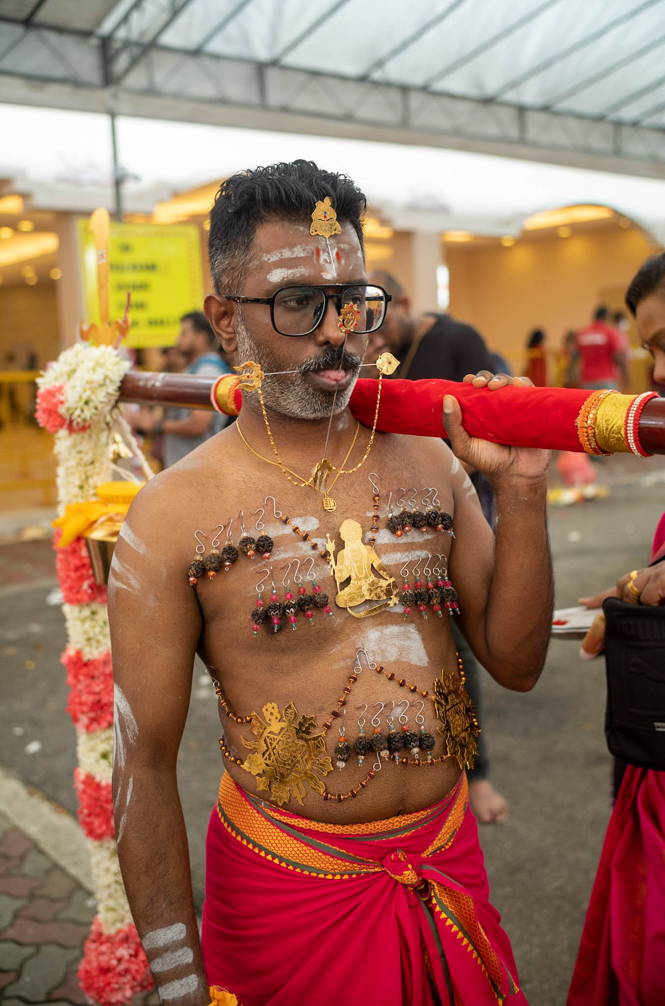 La cosa che stupisce è che cominci a trovare scarpe e ciabatte sui lati del marciapiede, ben prima che il tempio di Sri Srinivasa Perumal sia in vista. Molti fedeli arrivano direttamente scalzi dalla metro, preparandosi poi alla processione di 4 chilometri che li porterà da Saragon Road ad attraversare tutta Little India, giù fin oltre Fort Canning Park, chiudendo il voto nel Tempio di Thendayuthapani, qui a Singapore.