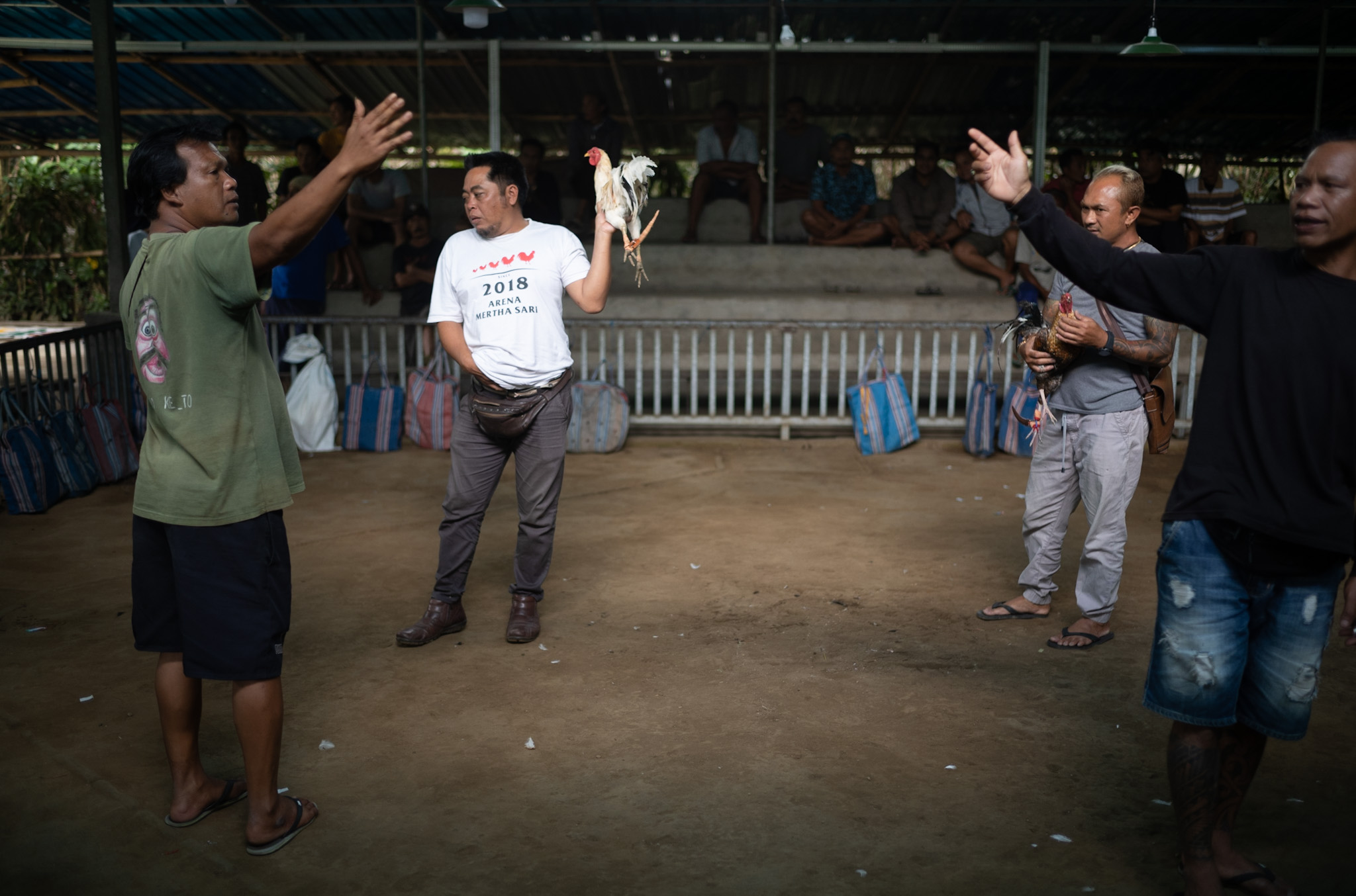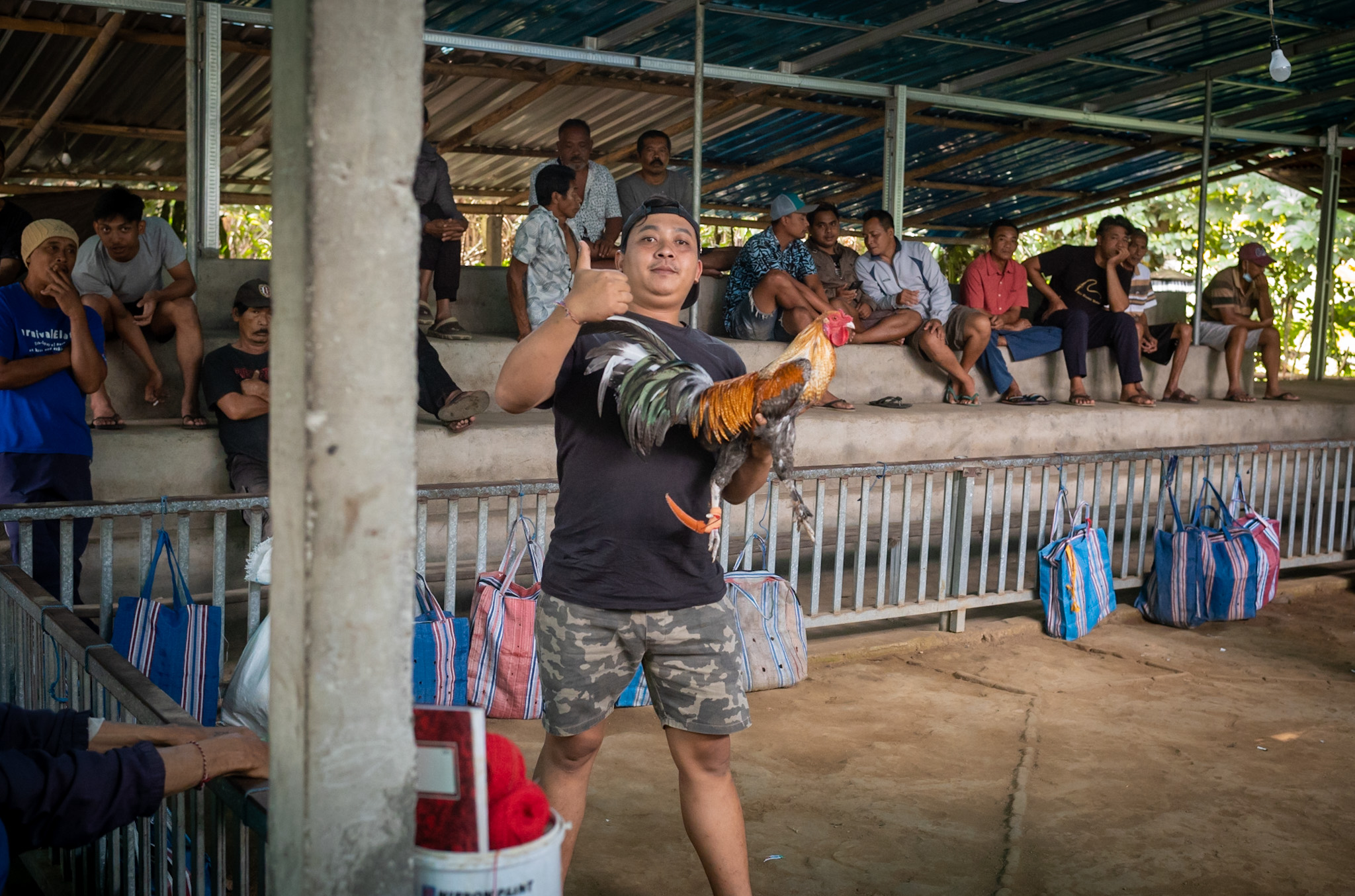 I proprietari del gallo ne celebrano le doti assassine esponendoli orgogliosi, gonfiando muscoli e tonsille dell’ umano in simbiosi con quelle dell’aviario, in una bolgia vocale che ha pari solo nella Main Station di Calcutta (e se non ci siete stati, evitate, credetemi sulla parola).