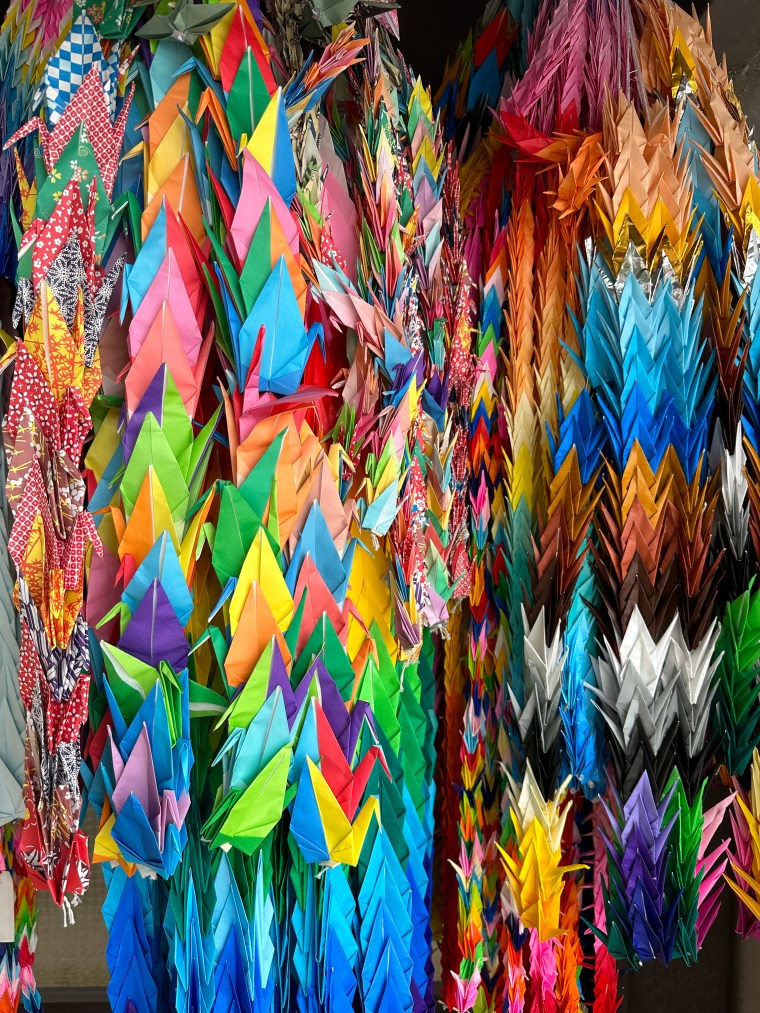 Oggi, la statua di Sadako che regge una gru d’oro svetta nel Parco del Memoriale della Pace di Hiroshima, con incise le parole: “Questo è il nostro grido. Questa è la nostra preghiera. Pace nel mondo“.