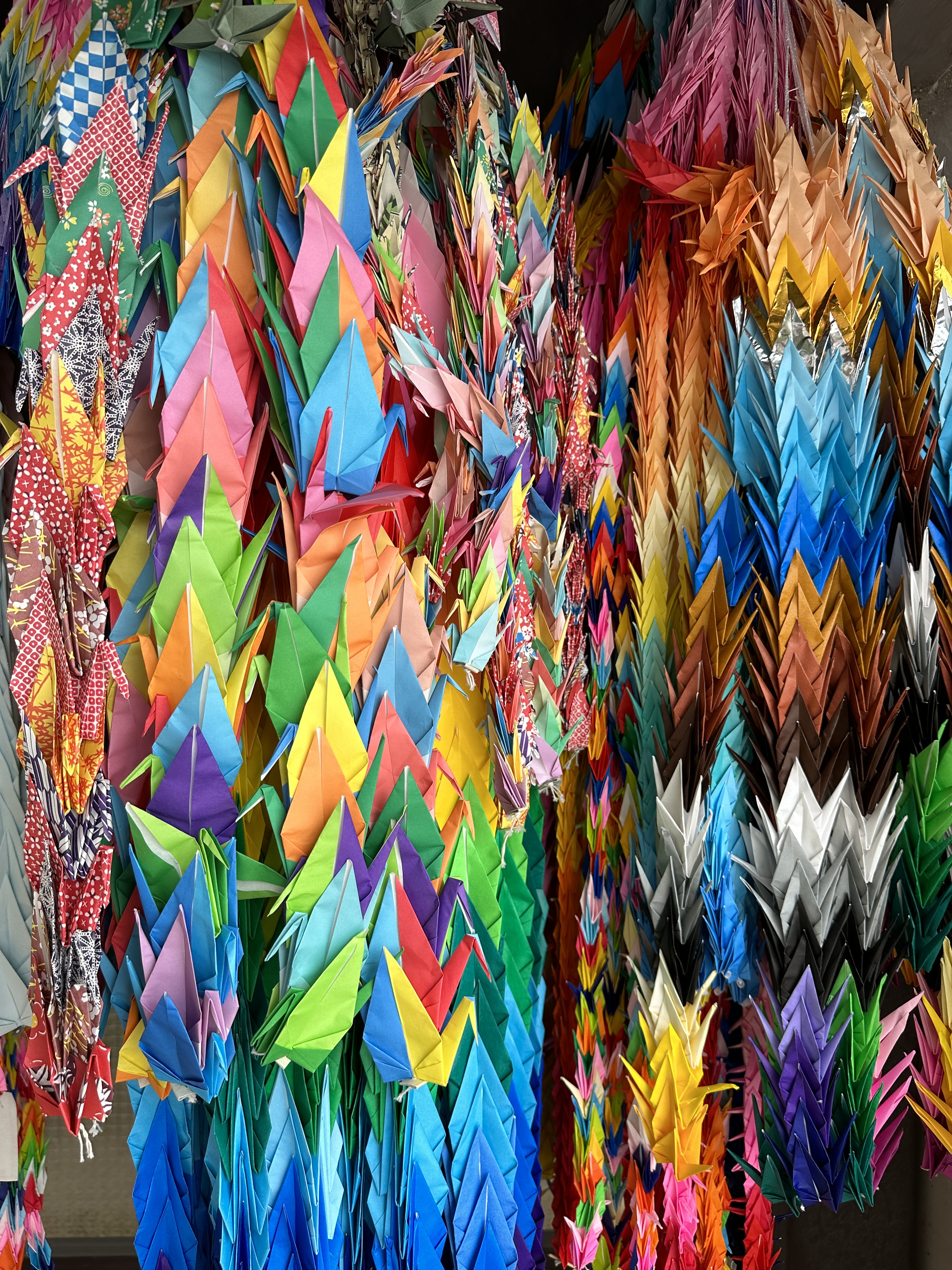 Oggi, la statua di Sadako che regge una gru d’oro svetta nel Parco del Memoriale della Pace di Hiroshima, con incise le parole: “Questo è il nostro grido. Questa è la nostra preghiera. Pace nel mondo“.