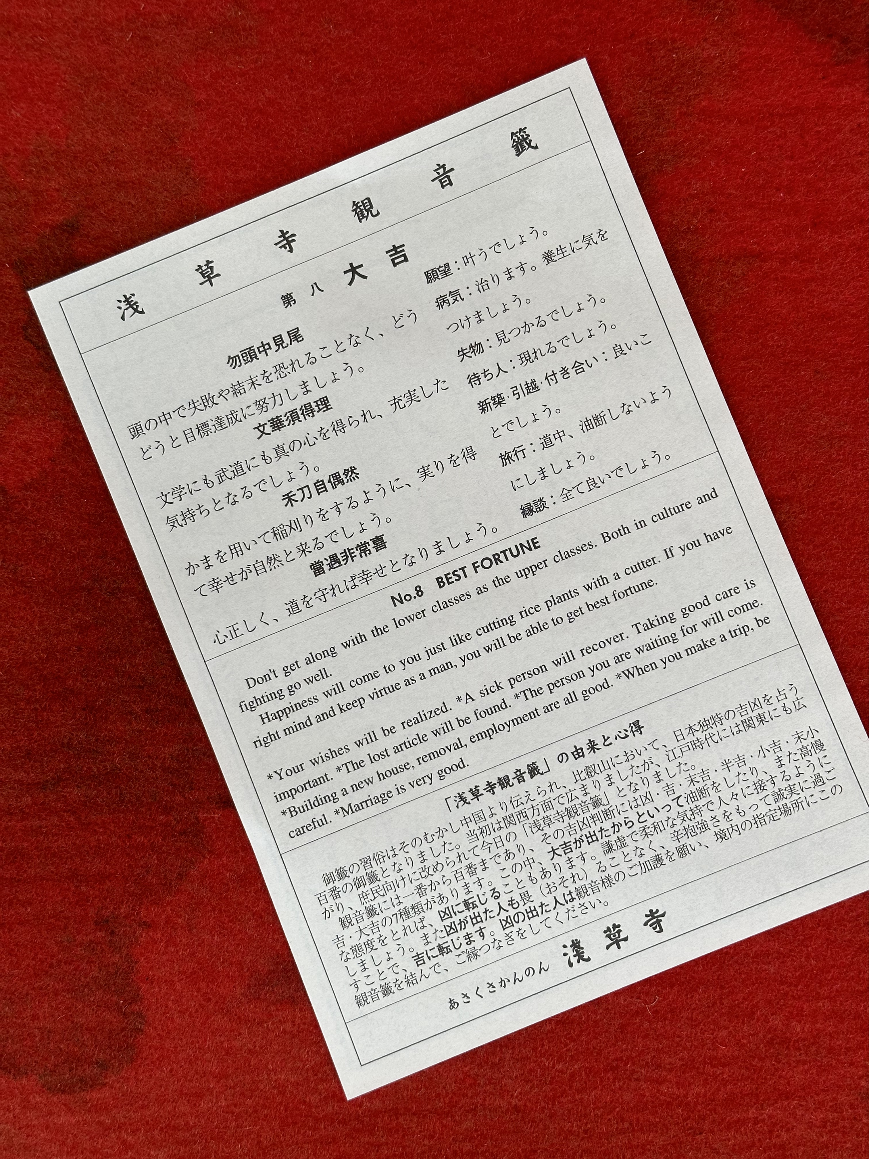 Congratulations on drawing “Daikichi 大吉” (Best Fortune) in your fortune slip!