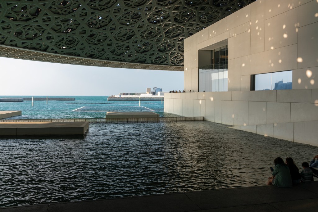 Designed by renowned architect Jean Nouvel, Louvre Abu Dhabi’s architecture is a masterpiece in its own right. The museum’s most distinctive feature is its iconic “floating dome,” a marvel of engineering and aesthetics. The intricately perforated dome, comprised of 7,850 aluminum stars, allows dappled sunlight to filter through and create a captivating “rain of light” effect, reminiscent of the way light plays through the palm fronds in the UAE’s oases. This architectural marvel not only serves as a functional element but also symbolizes the interconnectedness of cultures and the aspiration to bring the world together under one roof.