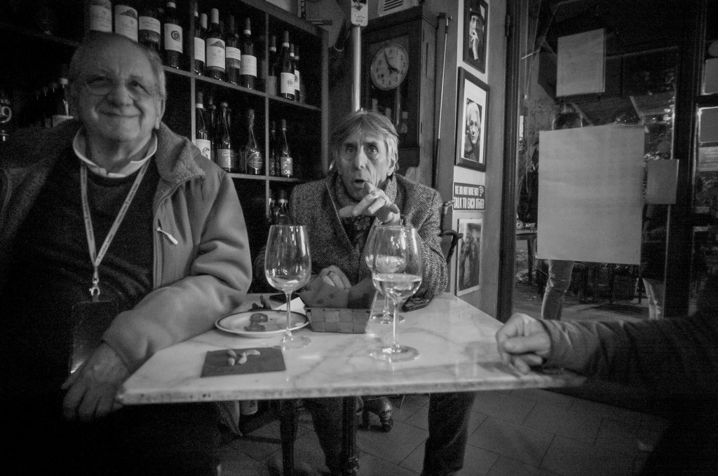 Sono seduto davanti a Rudy, con due bicchieri che ci separano: il suo bianco e il mio miscuglio di Campari, vino e acqua gassata, a rompere il digiuno calorico che mi sono imposto da ormai qualche mese. Intorno a noi quella splendida umanità che questo posto riesce a catalizzare.