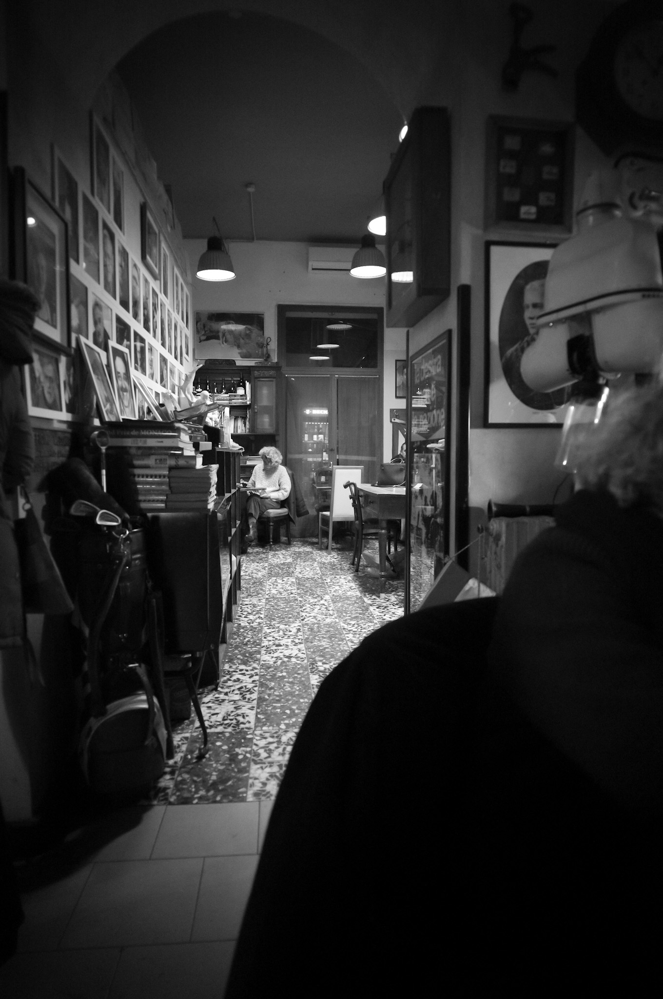 La guardo, sulla poltrona seduta difronte, e mi viene in mente una immagine di Janis Joplin: prendo in mano la Signora Tedesca a Telementro Monochrom, che ha stasera è uscita ad accompagnarmi con uno strano, vecchio, vetro Super-Angulon 21mm f3.4 del 1963.