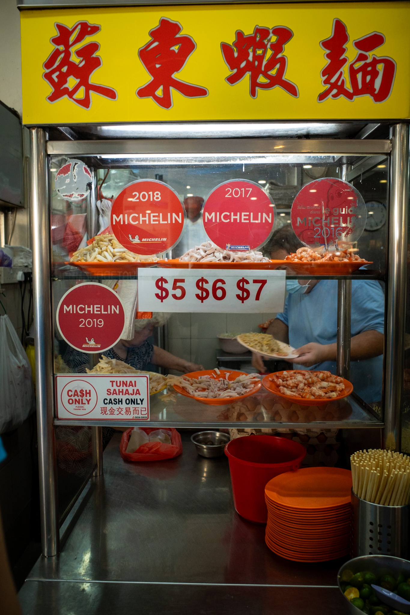 Lunga introduzione per dirvi che stamani ero al mercato di Tiong Bahru, secondo me il più bello di singapore sia sotto il profilo fotografico che quello alimentare, in coda davanti allo stallo del Hong Heng Fried Sotong Prawn Mee, premiato più volte negli anni con una menzione della Guida Michelin.