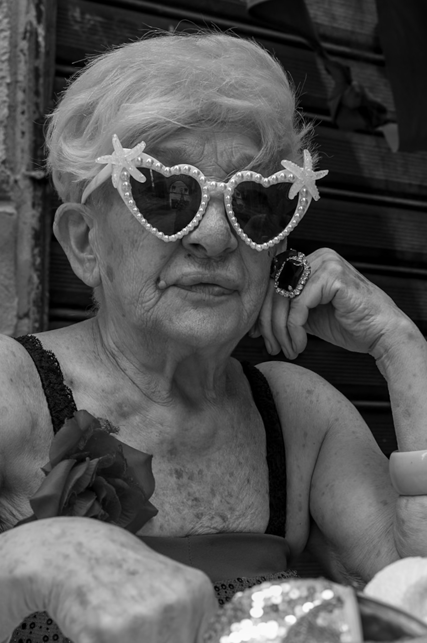 Ovvio a capotavola ci fosse Piera, in un elegante abito di paillettes rosse, e un mitico paio di occhiali.
