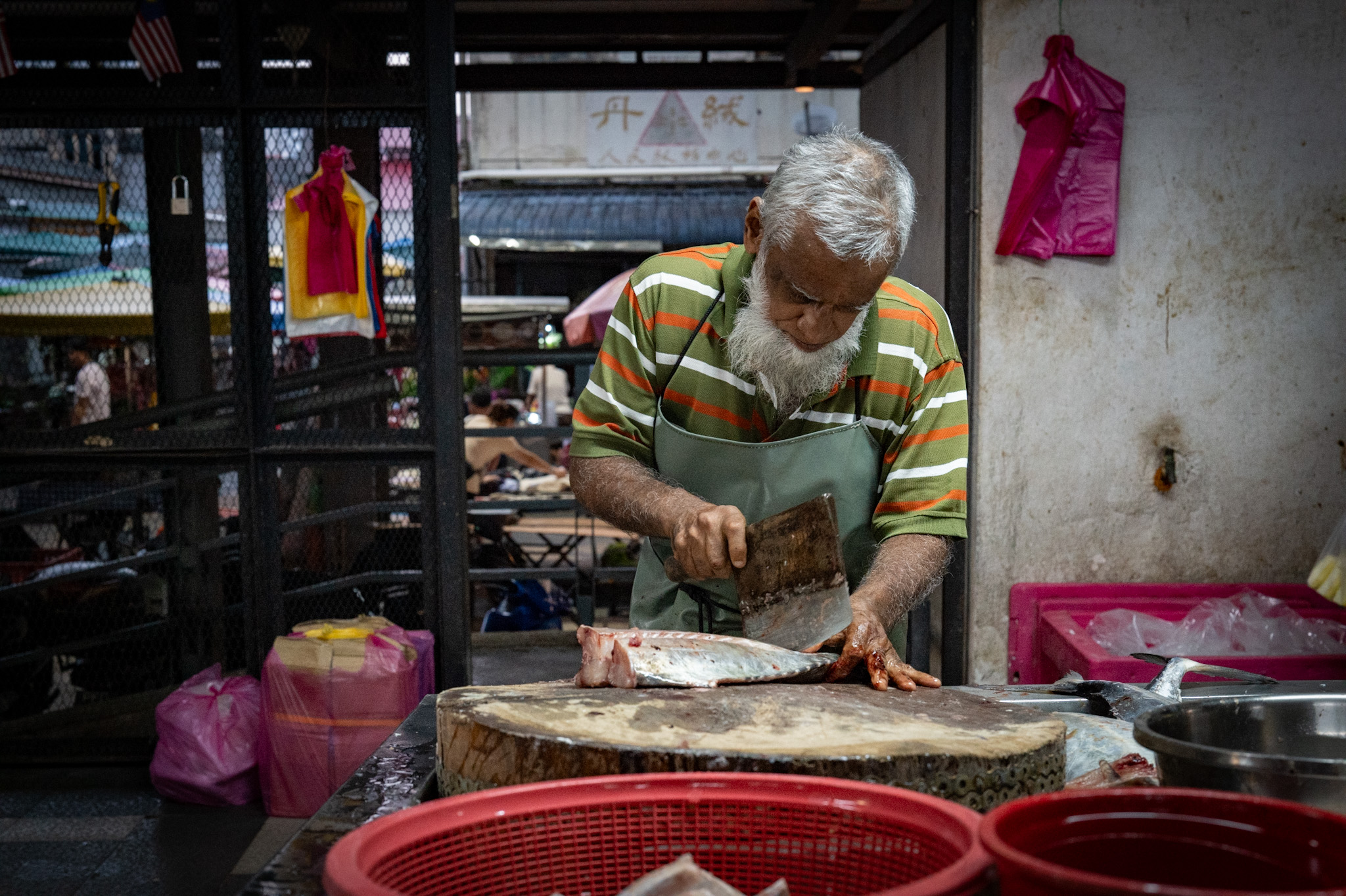 Qui si percepisce meglio che altrove il carattere cosmopolita della città: hokkien, malese, Chinese mandarino del basso impero, tamil e anche inglese si mescolano nei dialoghi. Il gesto, l’accenno, il movimento del corpo sono comunque parte del linguaggio universale anche qui, e il mio modo di parlare viene accettato come parte del continuo.