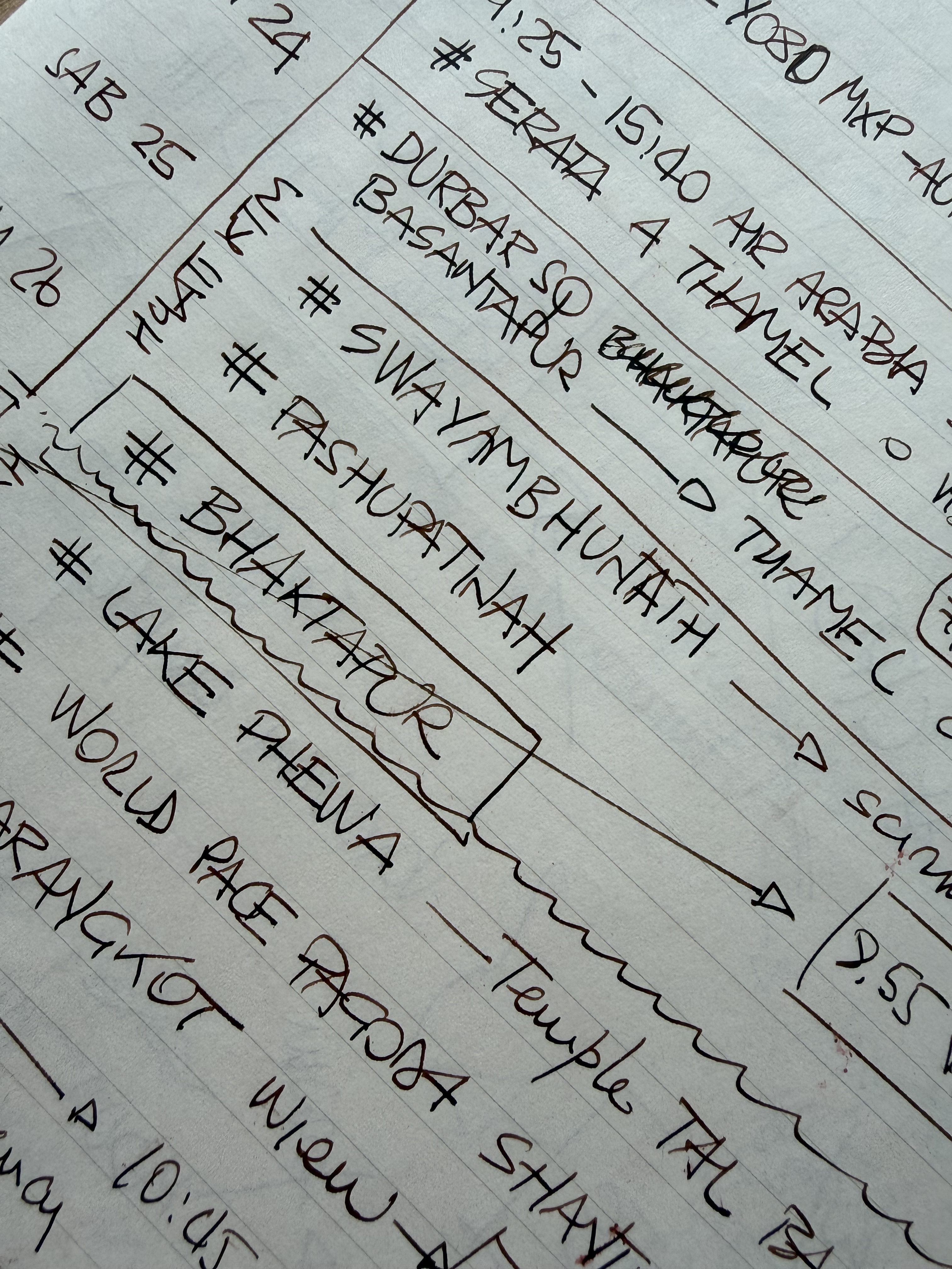 I’ve been using fountain pens all my life, even though I was an early — and rather enthusiastic — adopter of digital tools. Ink makes me think. It helps me design, sketch, and build mental maps that go far deeper into my senses than any brilliant piece of software ever could. It leaves space for mistakes, misspellings, language blends, and lines that will never be as straight as the pixels on a screen. The photos are from my most recent notes, written with my trusted nib, on Japanese paper.