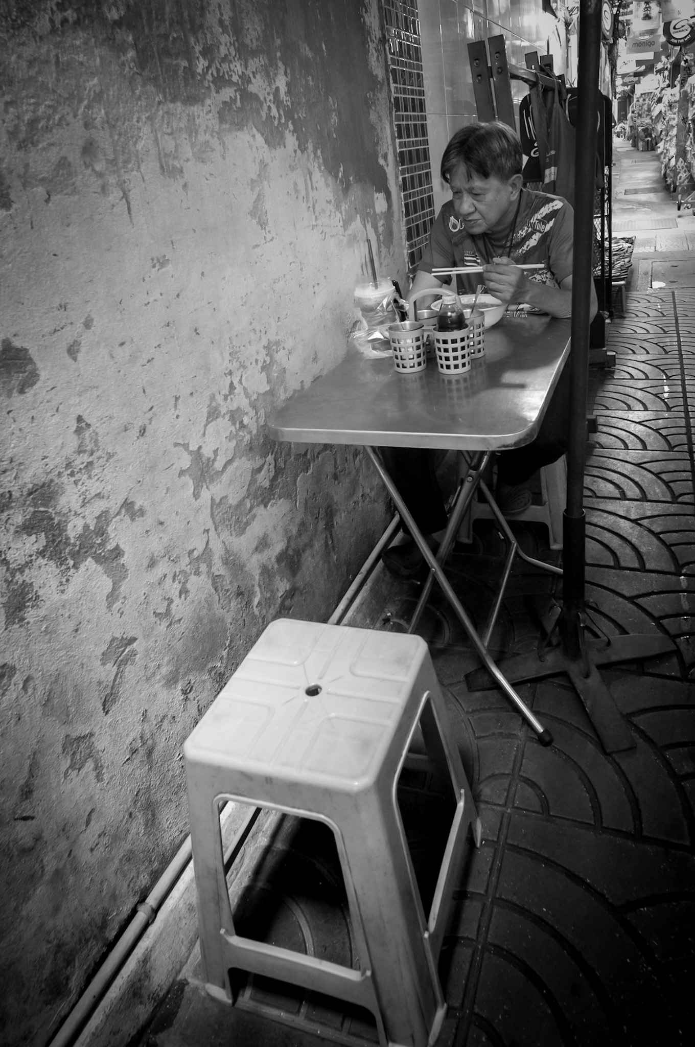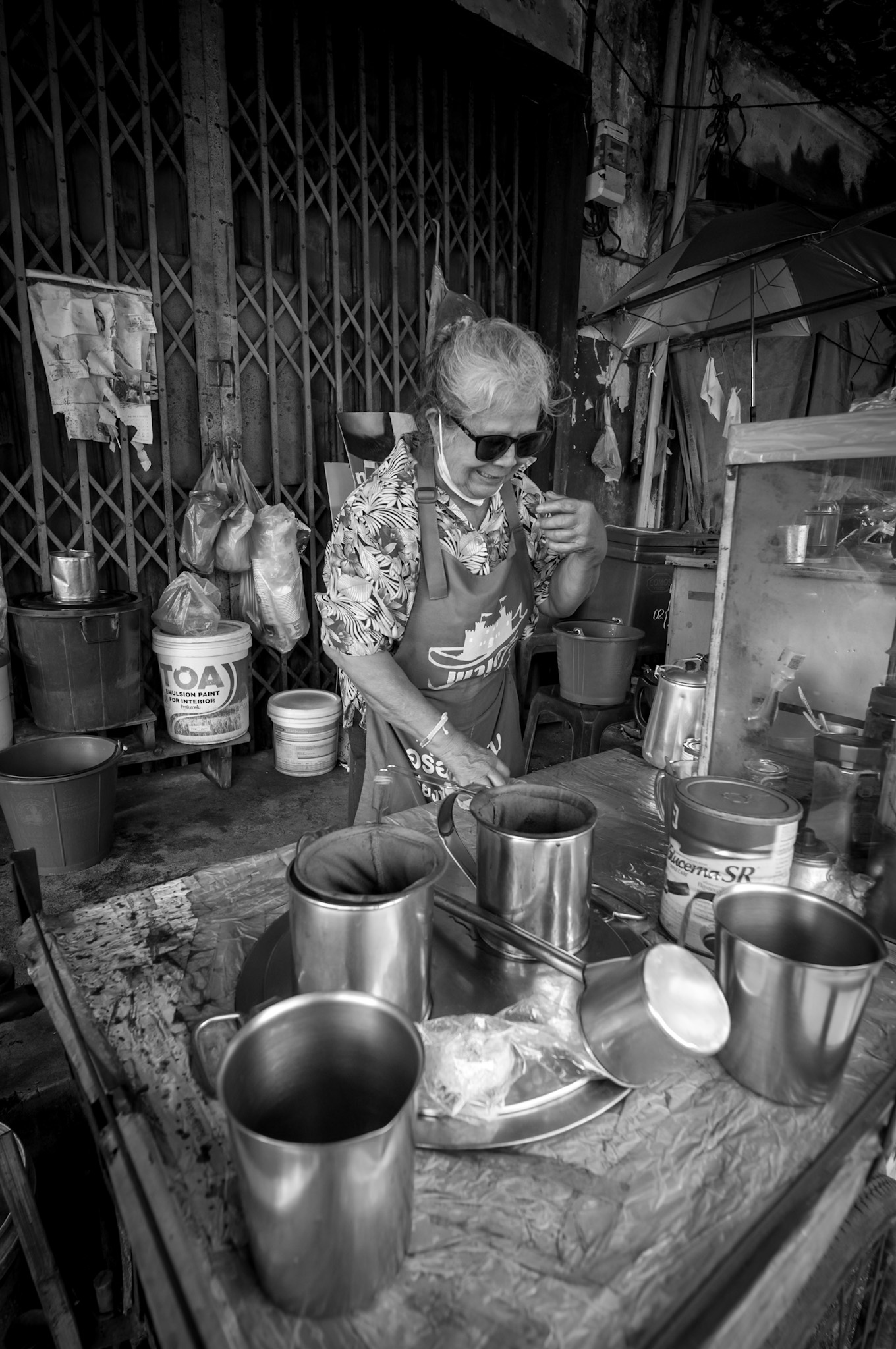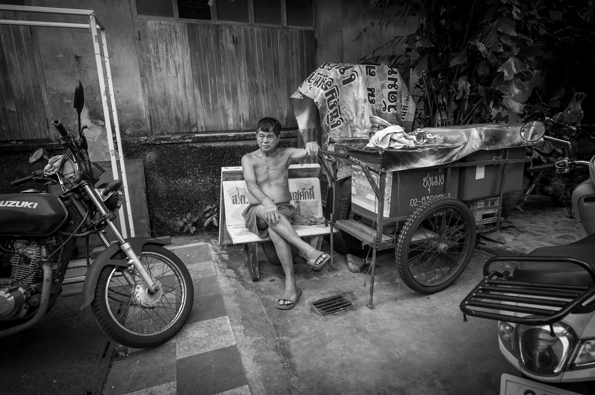 The photos in this story were taken in Bangkok’s Talat Noi district, with a Leica M11 Monochrom and an 18mm lens: narrow alleys, metal workshops, and that soft light that reveals more than it hides.