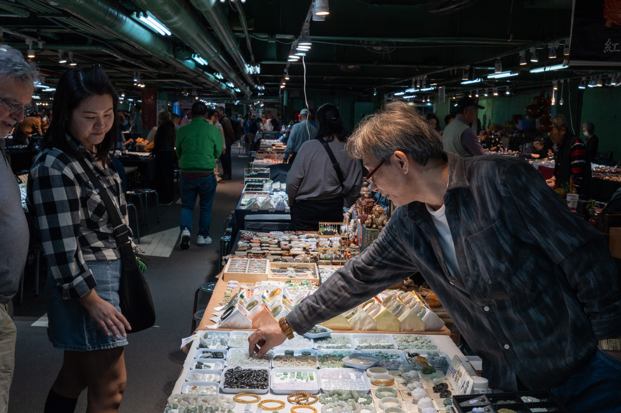 I watched an elderly woman choosing a pendant shaped like a small cabbage—a symbol of wealth—and the seller explaining the different hues of green, from the almost translucent ice-jade to the deep imperial tones. Nearby, a man rubbed a jade bracelet gently between his fingers, feeling its smoothness, the way jade always seems to be neither cold nor warm, but alive with its own quiet temperature.