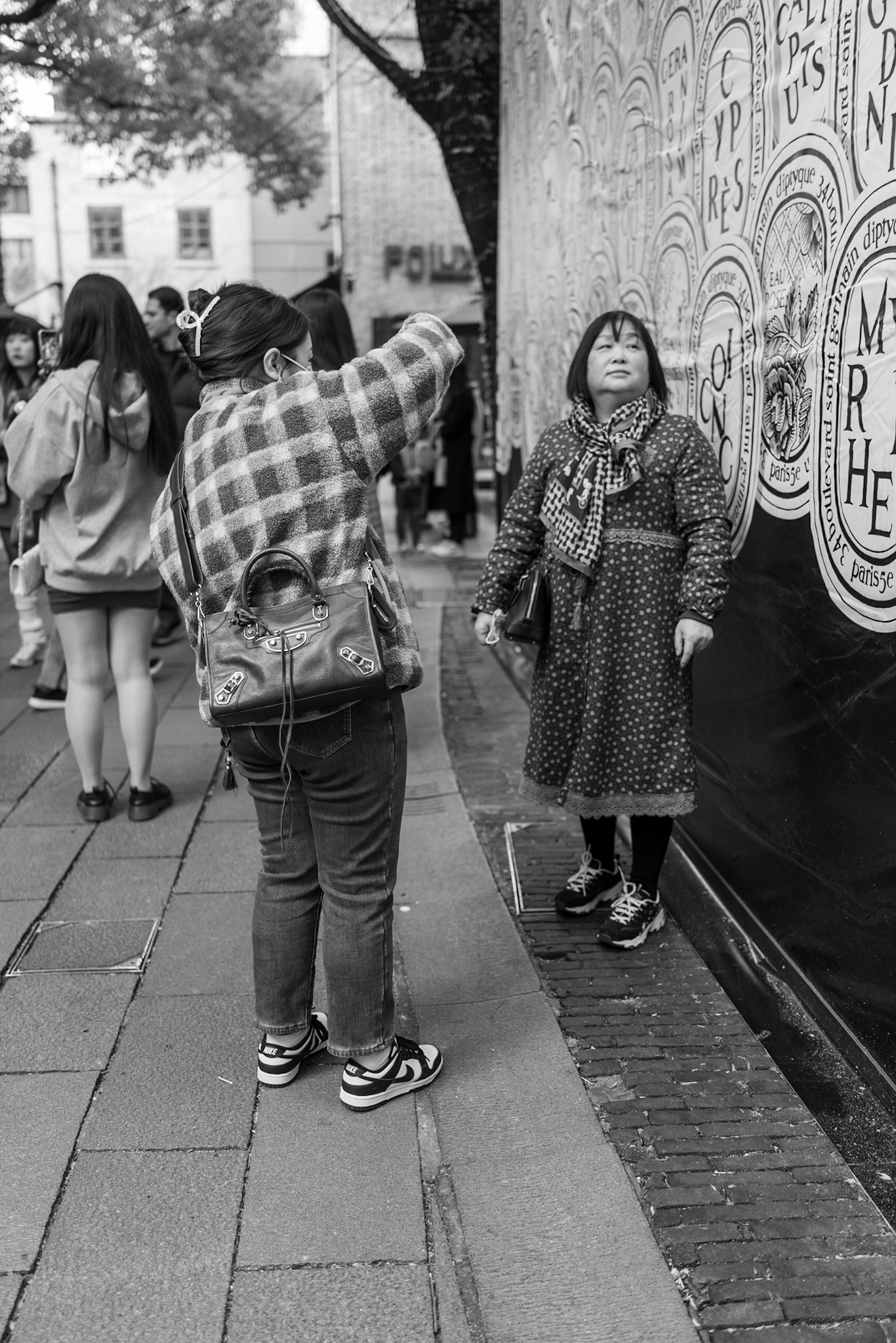 Photographs taken during my stays in 2024–2025 in Xintiandi, Shanghai’s pedestrian district near my office. In these frames, I am often drawn to people in motion, whose presence animates the urban landscape through style, gesture, and behavior.