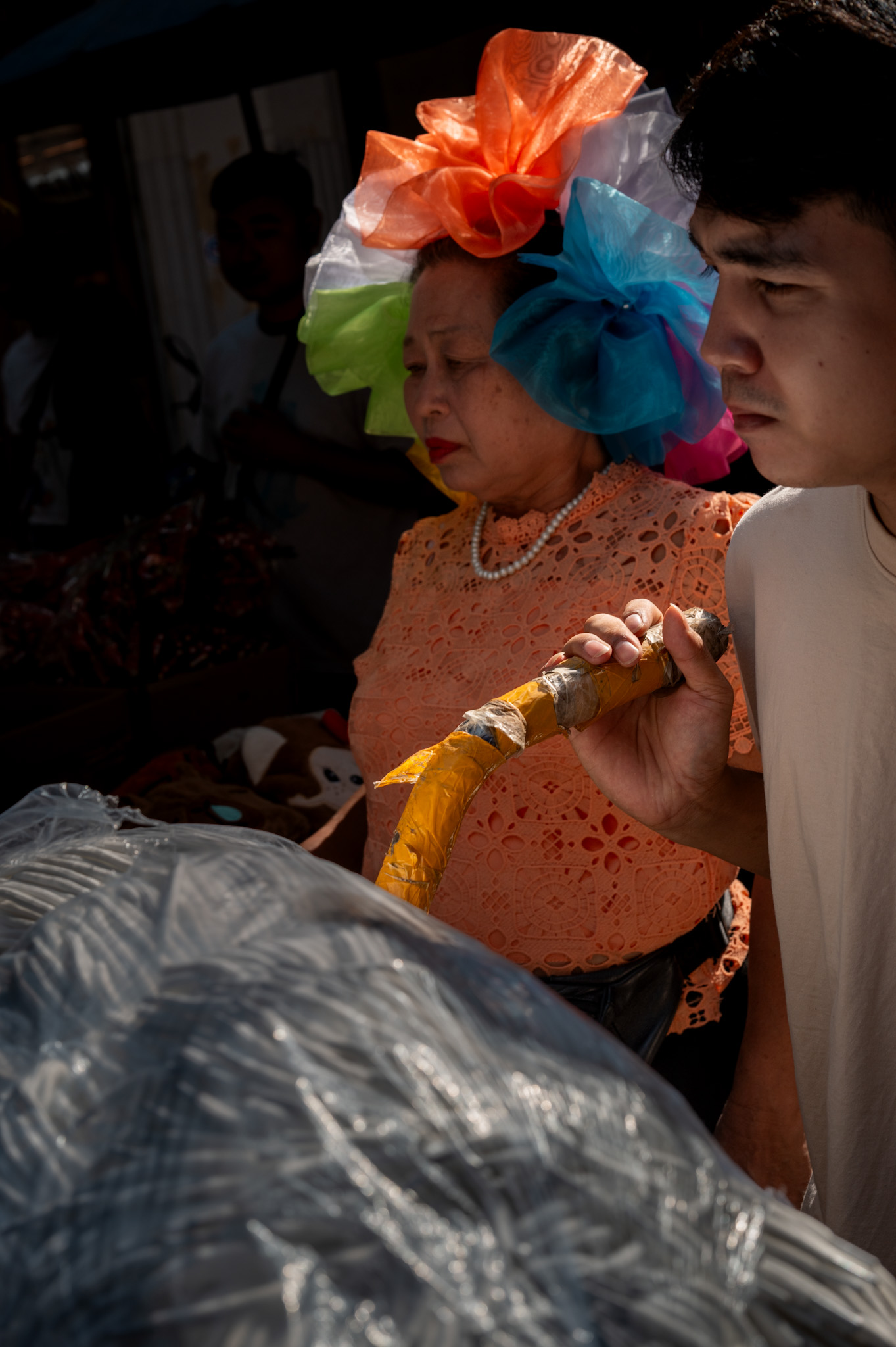 What fascinates is how the hand truck collapses scale. The same orchids that will decorate hotel lobbies, wedding halls, airport lounges, and temples across the city all pass through this narrow funnel of human-powered transport. Global supply chains end here, not with a signature on a tablet, but with a wheel crossing a threshold.