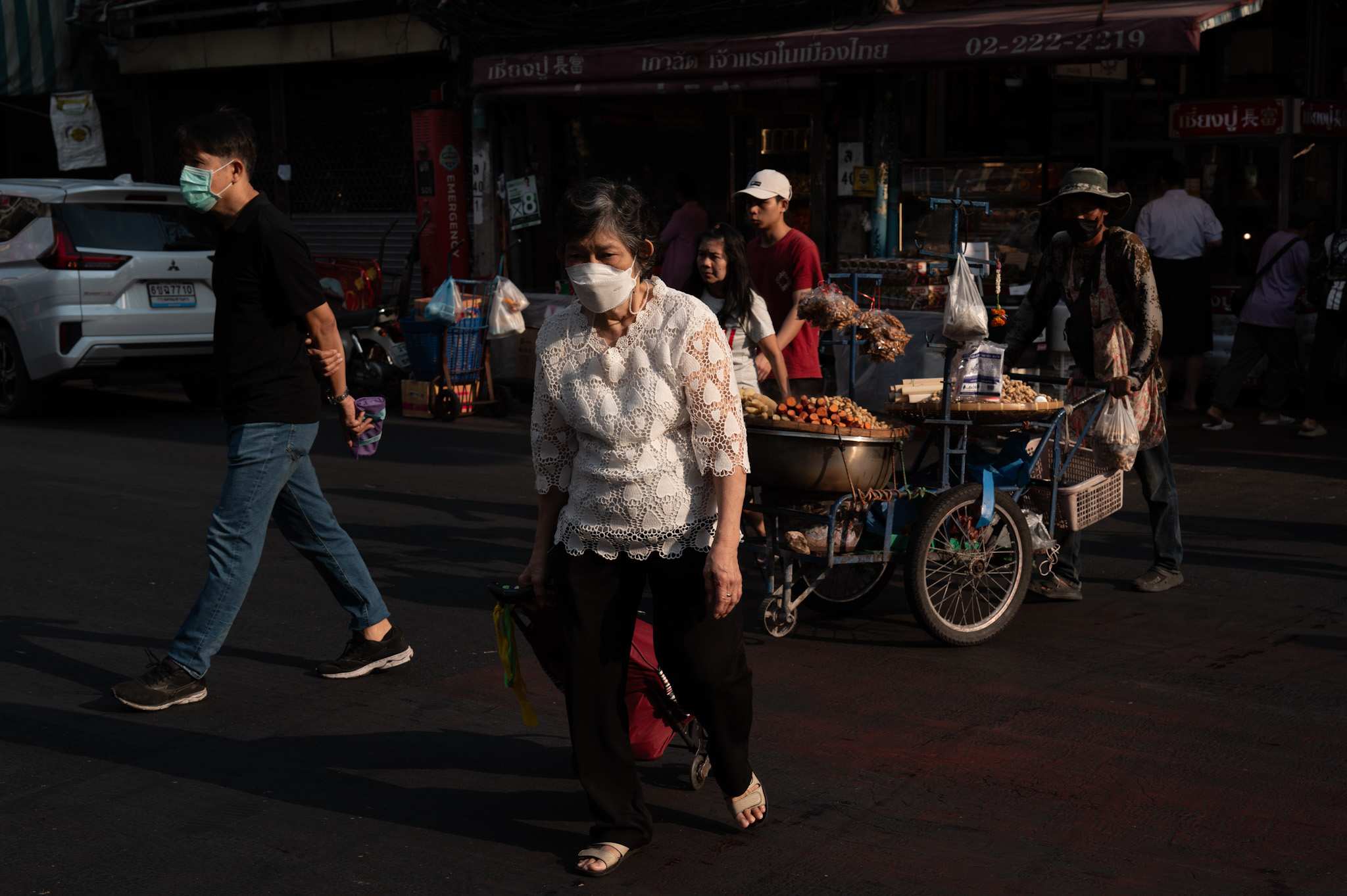 In places like Yaowarat, the trolley becomes nocturnal architecture. At dusk, metal carts line up like migrating animals, each claiming a few square meters of pavement. Noodle soups simmer beside grills, desserts follow mains, coffee appears after midnight. The street assembles itself into a meal. When dawn approaches, it dissolves again.