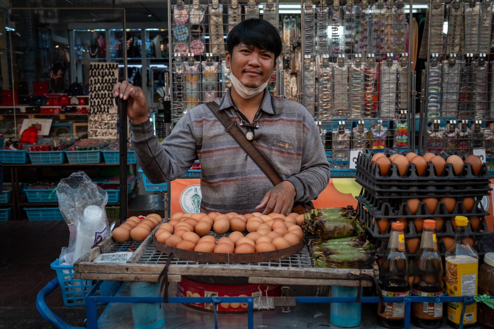 The cook stands centimeters from the eater. The transaction is fast, human, unbuffered. Payment is often cash, sometimes a QR code taped to steel. Old and new coexist without friction, this is everyday intelligence made visible. A city solving itself one plate at a time.