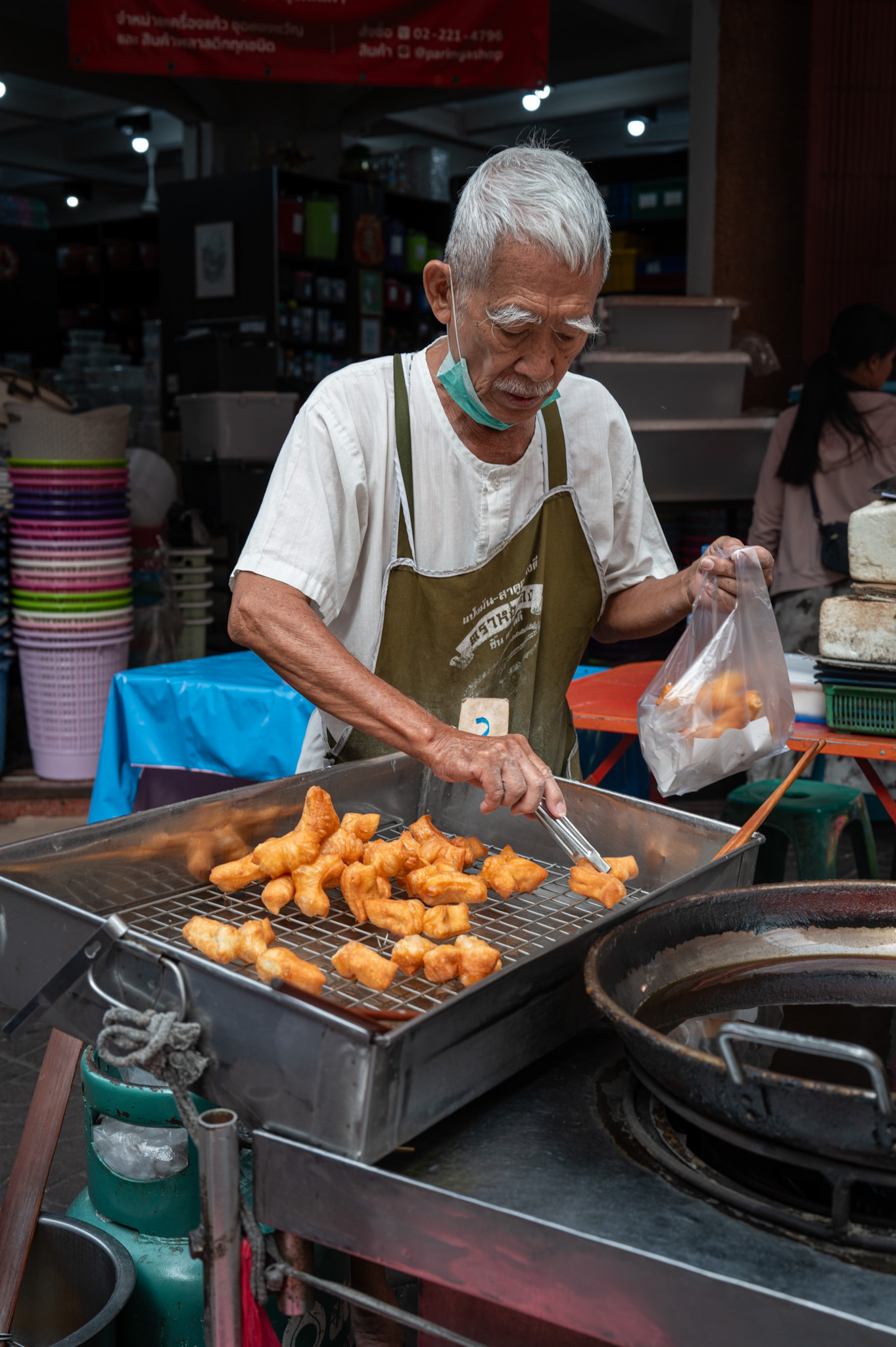 Even markets such as Pak Khlong Talat—known for flowers, not food—are fed by trolleys that slip between crates of orchids and jasmine, delivering sustenance to workers who never leave their posts. Here, catering is invisible infrastructure.