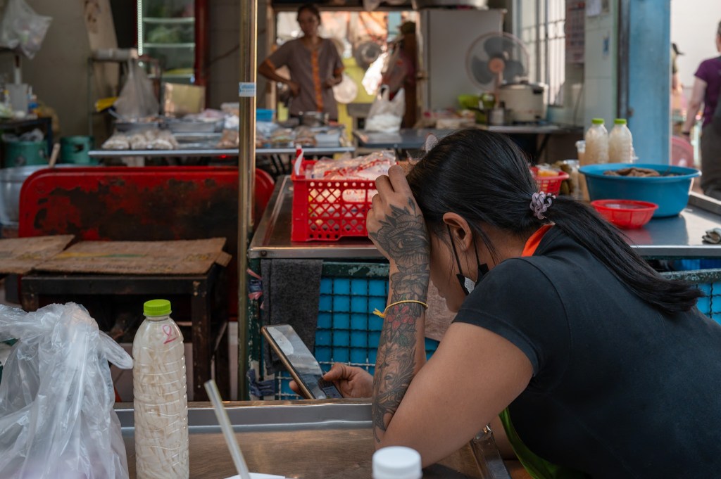 What matters is the daily equilibrium: sell enough to replenish tomorrow’s ingredients, pay today’s costs, eat, sleep, repeat. Anything beyond that is not reinvested aggressively; it is absorbed by life. School fees, medicine, a temple donation, a repaired motorbike. The stall does not aim to climb. It aims not to fall.